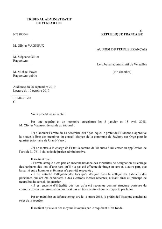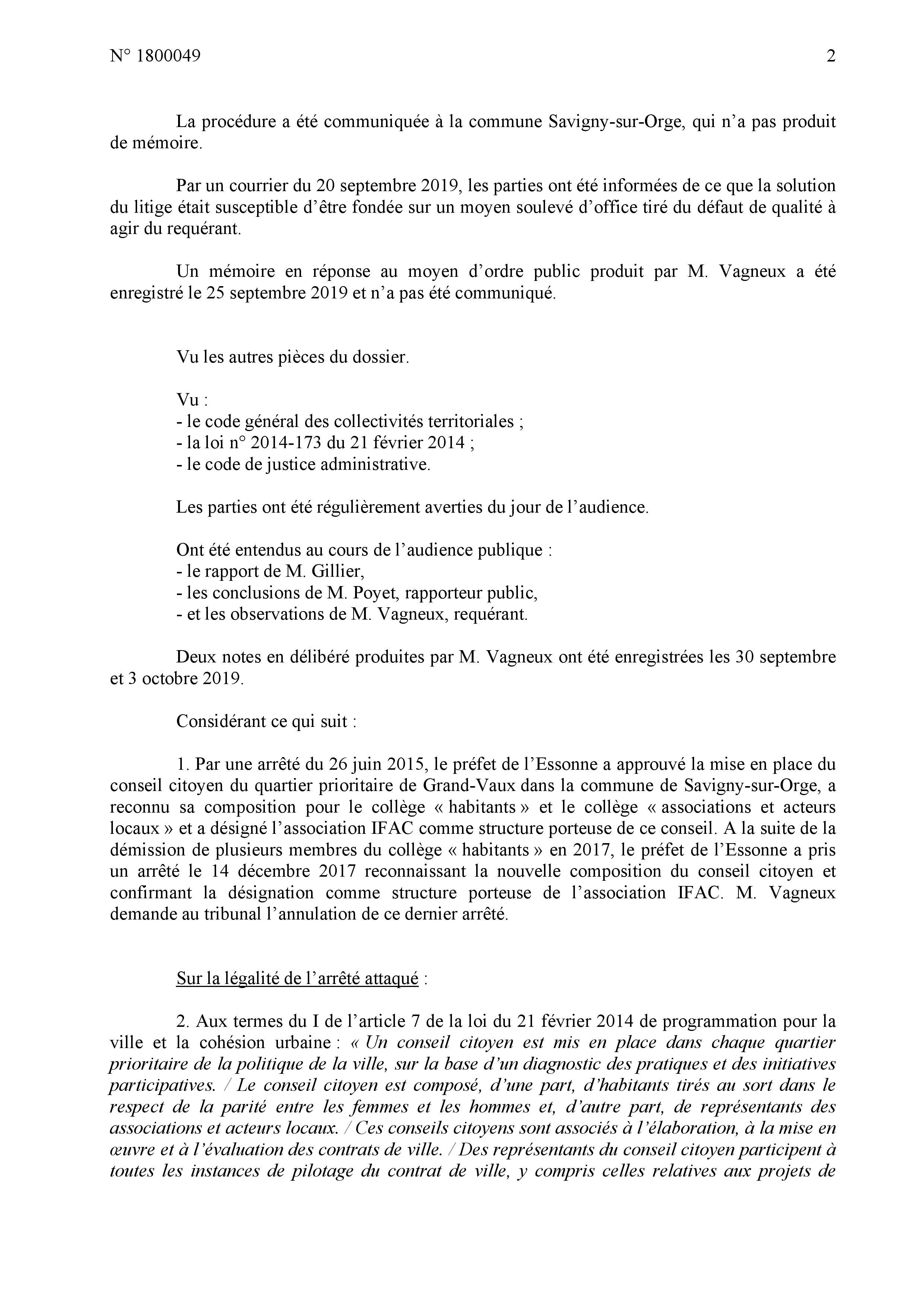À commencer par le fait que je me sois fait peur, car le rapporteur public était défavorable à l’audience à l’idée d’annuler l’arrêté, du fait d’une absence d’intérêt à agir. Or, je relève que ce sujet n’est même pas évoqué dans le jugement !