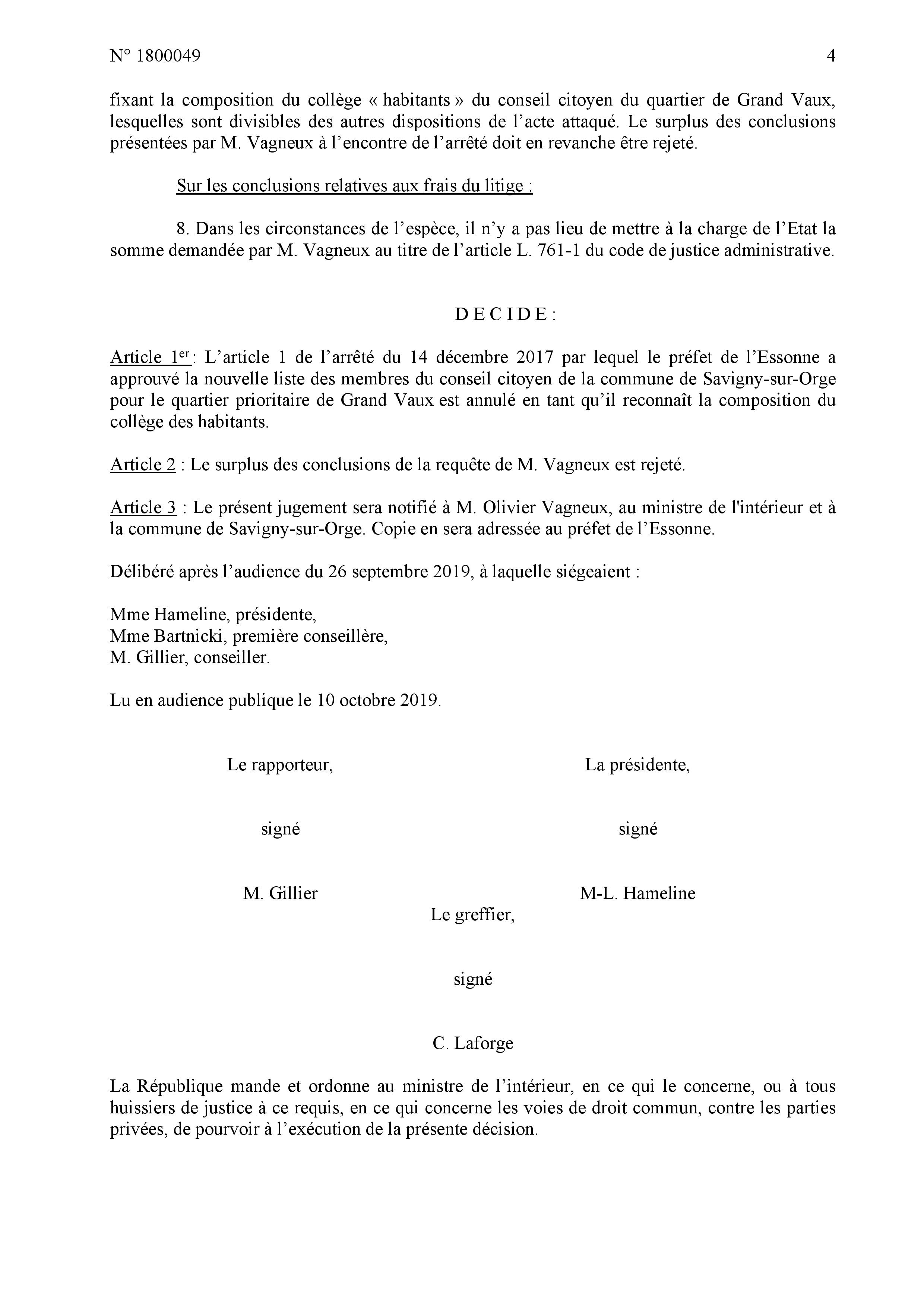 Je note enfin que la Commune n’a personne pour avoir produit un mémoire dans l’affaire. À quoi bon avoir un service juridique dans ces conditions ?