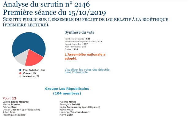 En oubliant tout ce qu’il y a d’autres dans le texte : la levée de l’anonymisation des dons de gamètes et donc la destruction des gamètes stockées dans les CECOS, l’auto-conservation ovocytaire sans raison médicale, les travaux sur les embryons chimères humains / animaux…