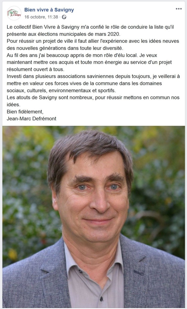 Encore heureux que les amis de Jean-Marc DEFRÉMONT, que l’on retrouvait déjà sur la liste GUYARD de 2014, ait désigné Jean-Marc comme candidat !