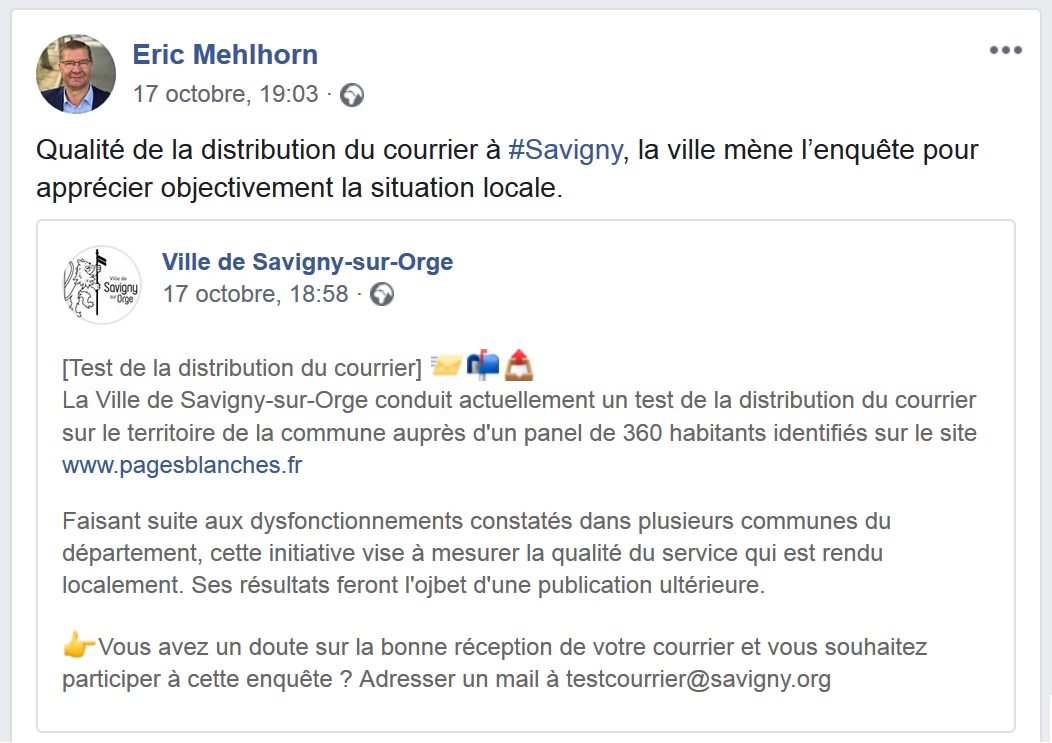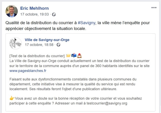 Maintenant, et personnellement, je ne vois pas en quoi que chacun dise s’il reçoit ou pas son courrier, plus ou moins régulièrement, va faire qu’il sera mieux distribué, sauf à créer un service de poste municipale.