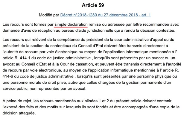 Visiblement que je n’ai pas compris la notion de simple déclaration, que je croyais pouvoir accomplir par un recours prenant la forme d’une lettre remise au greffe du bureau…