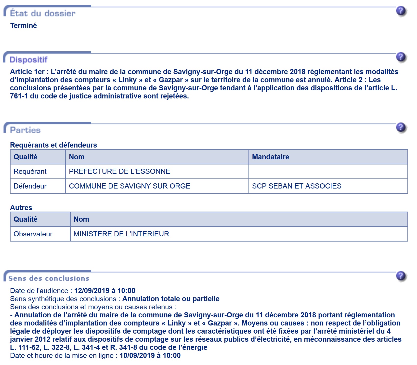 Une réponse à « Saviniens, l’arrêté anti-Linky du maire de Savigny-sur-Orge a été annulé par le Tribunal et n’est donc plus opposable… »