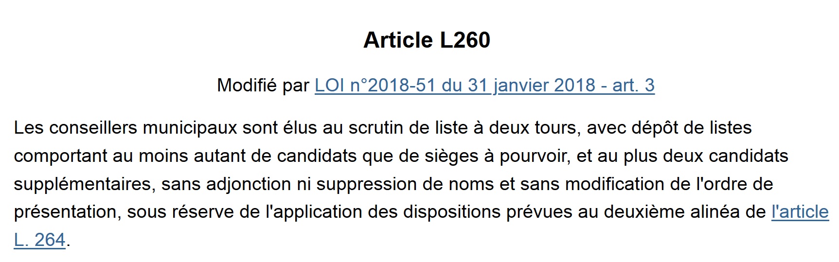 Chaque mandat, 3 000 des 36 000 conseils municipaux de France sont automatiquement dissous du fait de l’épuisement des candidats les composant. Pour pallier cette situation, la loi électorale propose désormais aux listes de présenter de manière optionnelle deux candidats supplémentaires, qui ne figurent cependant pas sur les bulletins de vote.