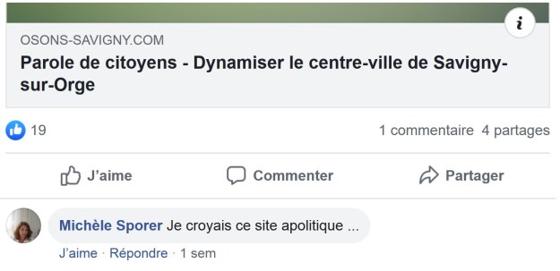 Et le logo est sinon rendu invisible sur leurs publications, ou sur la devanture de leur local de campagne. On ne le remarque ainsi pas tellement sur leur dépliant, et davantage, on lit plus facilement « liste citoyenne et transpartisane ». Ce qui en soit est risible, parce que transpartisane devrait juste dire qu’il va y avoir le MoDem avec eux…