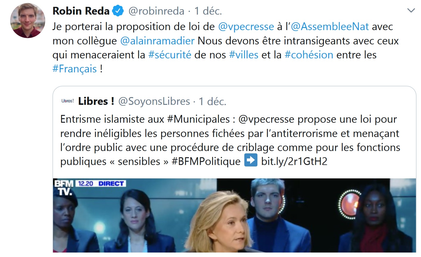 Et dans ces moments, REDA n’a pas les mêmes scrupules à se faire élire par un électorat communautaire qui « menace la sécurité de nos villes et la cohésion entre les Français »…