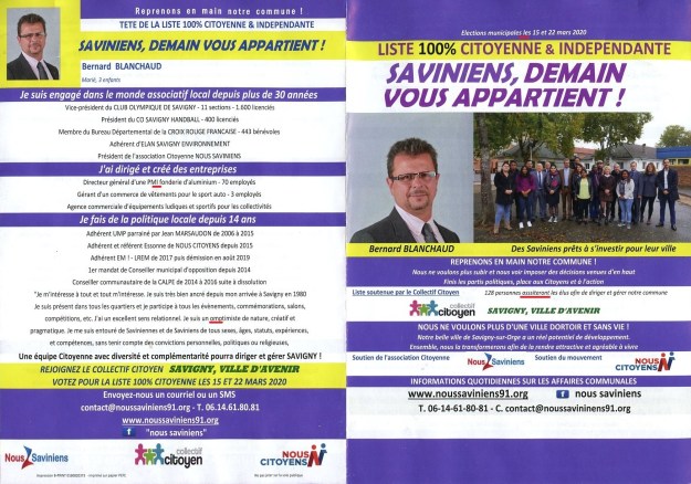 Et Bernard qui fait campagne contre les partis, alors qu’il a été à En marche jusqu’en août 2019, et qu’il est à Nous Citoyens depuis 2015…
