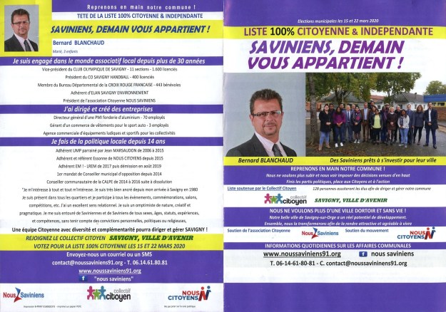 Puisque Bernard annonce sur Facebook qu’il ne fera que deux tracts (je ne comprends donc définitivement pas comment il va pouvoir dépenser un total de 16 000 euros sauf à se faire arnaquer sur tout ce qu’il commande), je lui souhaite sincèrement que son deuxième document, dont je déduis qu’il devrait être un livret de 12 pages, soit sincèrement meilleur que le premier qui est raté de bout en bout, tant sur le fond que sur la forme…