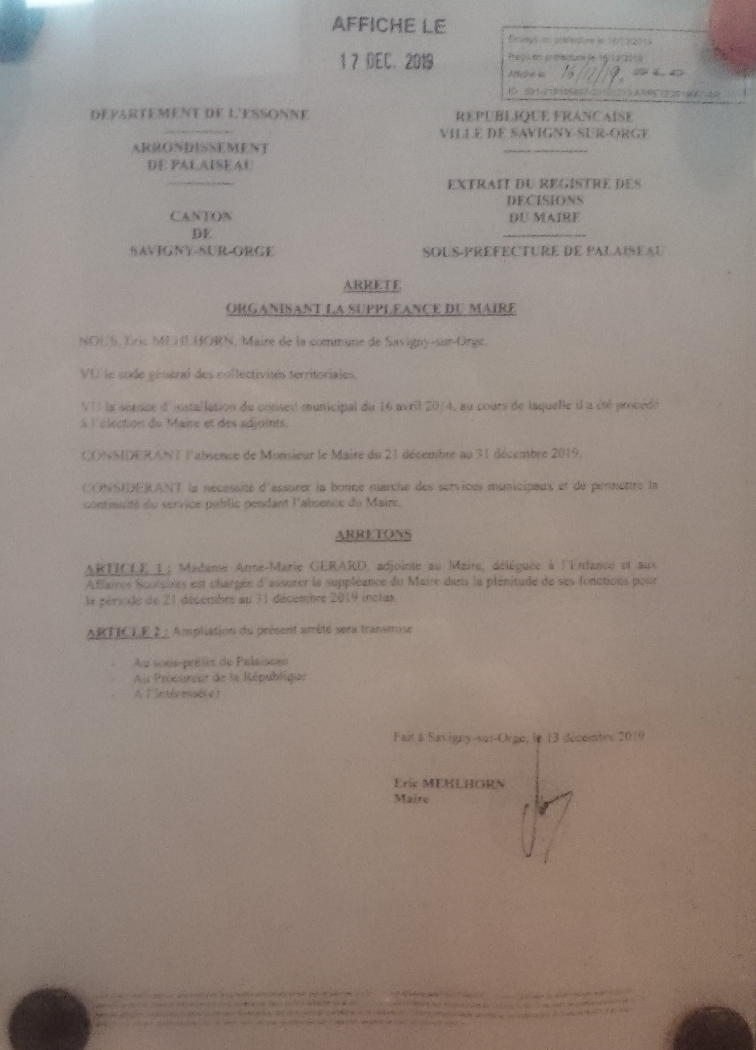 Et puis le conseil territorial est reporté à ce samedi matin (21 décembre 2019).