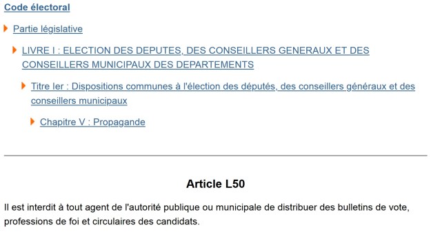 En fait, ce n’est pas tant l’article L.50 du code électoral que les différentes obligations déontologiques des fonctionnaires qui font que Antoine doit se méfier, ne serait-ce que pour ne pas éviter des ennuis à ses amis… Je ne doute personnellement pas que des personnes comme Valérie RAGOT, qui gagne 193 euros chaque fois qu’elle rédige l’équivalent d’un A4, vont baliser au maximum, sachant qu’ils dégagent dans trois mois.