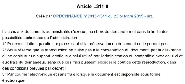 N’empêche que ces documents existent sous forme électronique, au moins en partie, donc qu’ils devrait me les communiquer sous forme électronique ; enfin s’il connaissait, et agissait « conformément » à la loi.