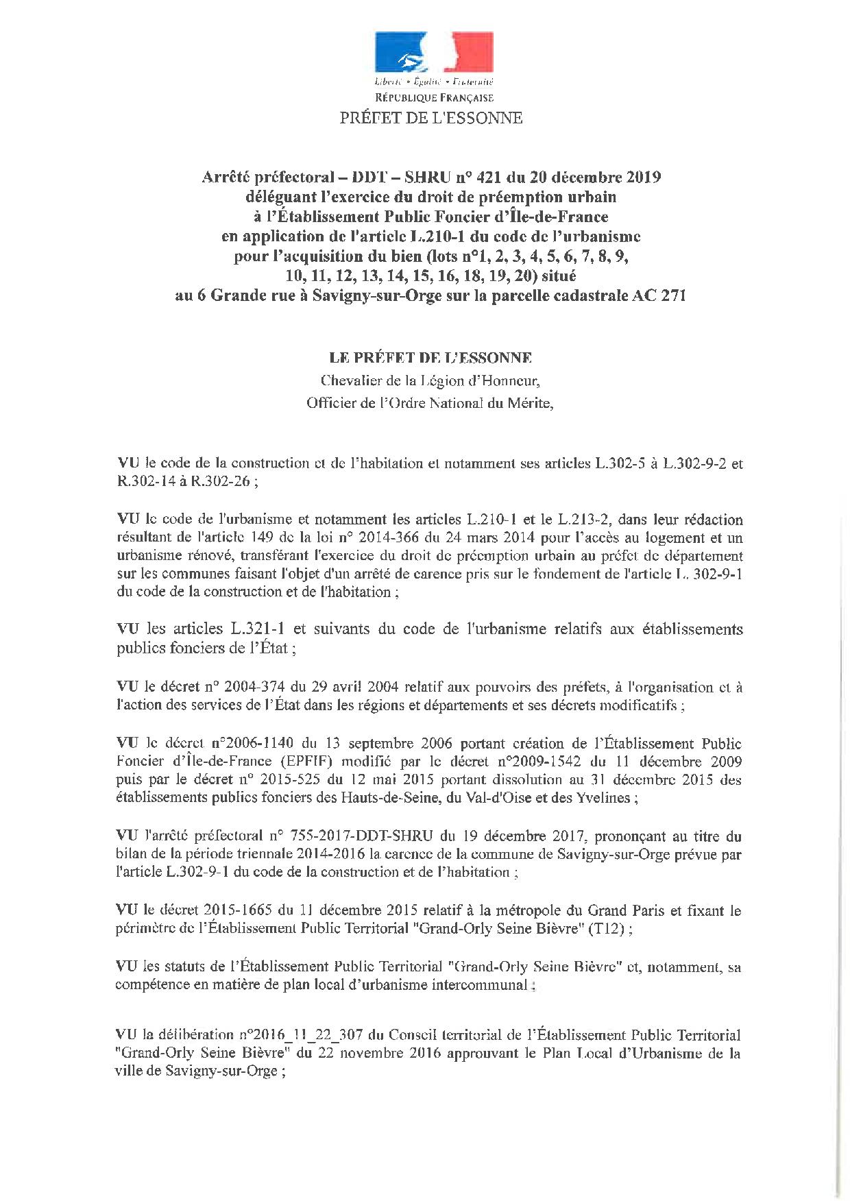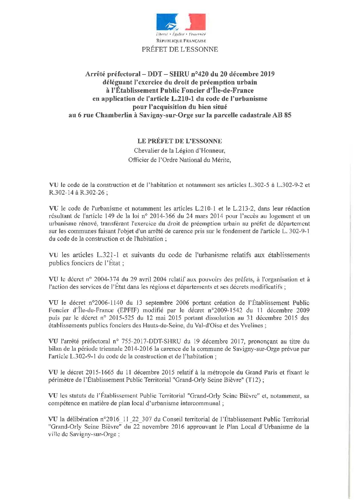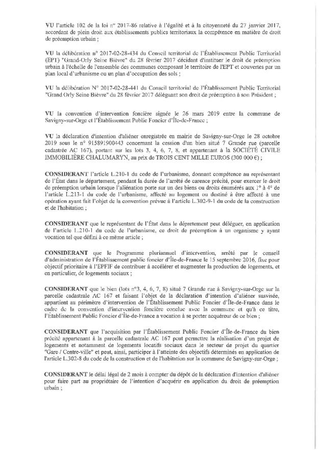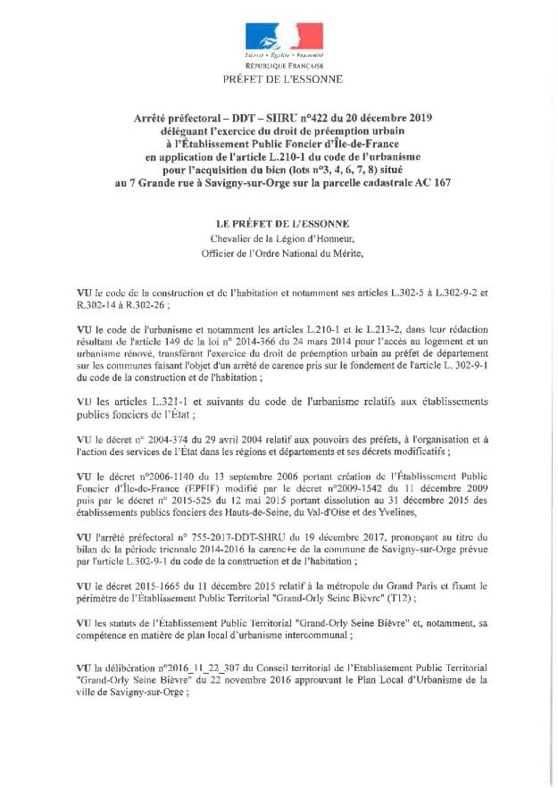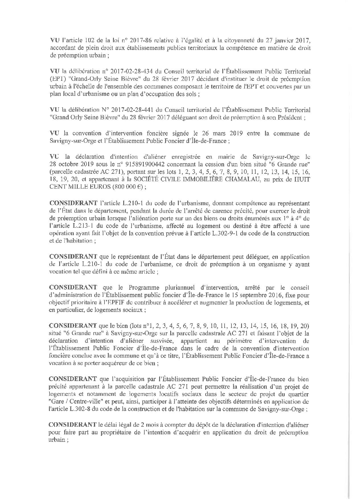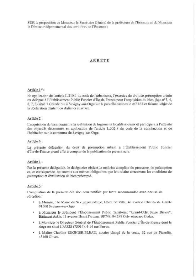 C’est dans ces conditions que la soumise Commune de Savigny-sur-Orge a décidé de signer une convention d’intervention financière avec l’Établissement public foncier d’Île-de-France (EPFIF), revenant à lui transférer ce droit.