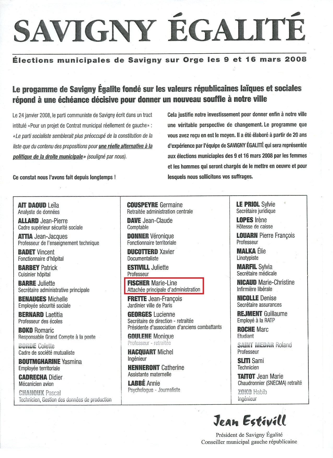 – Jean ESTIVILL avait-il tant de mal à boucler sa liste qu’il devait aller chercher les premiers venus, y compris des gens ne partageant pas ses convictions ?