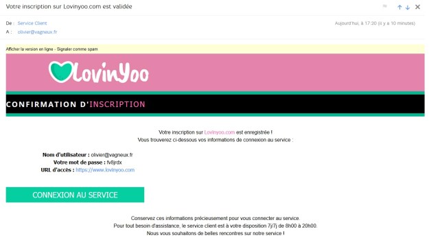 Même pas d’humour ce corbeau, il m’inscrit sur un site hétérosexuel. C’est d’ailleurs bien la preuve de la fiabilité de cette plate-forme qui n’a pas manqué de vérifier mon profil. Moi, si j’avais voulu m’emmerder jusqu’au bout, je me serai au moins mis sur un site bi ou homo. Du coup, j’en ai profité pour demander les coordonnées de celui qui m’avait inscrit. On va voir si ce con utilise un VPN pour masquer son IP. Qu’il continue !