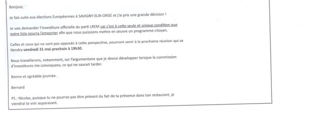 Bernard a vu que En marche était arrivé en tête aux européennes, donc il a pris la décision de demander l’investiture de LaREM.