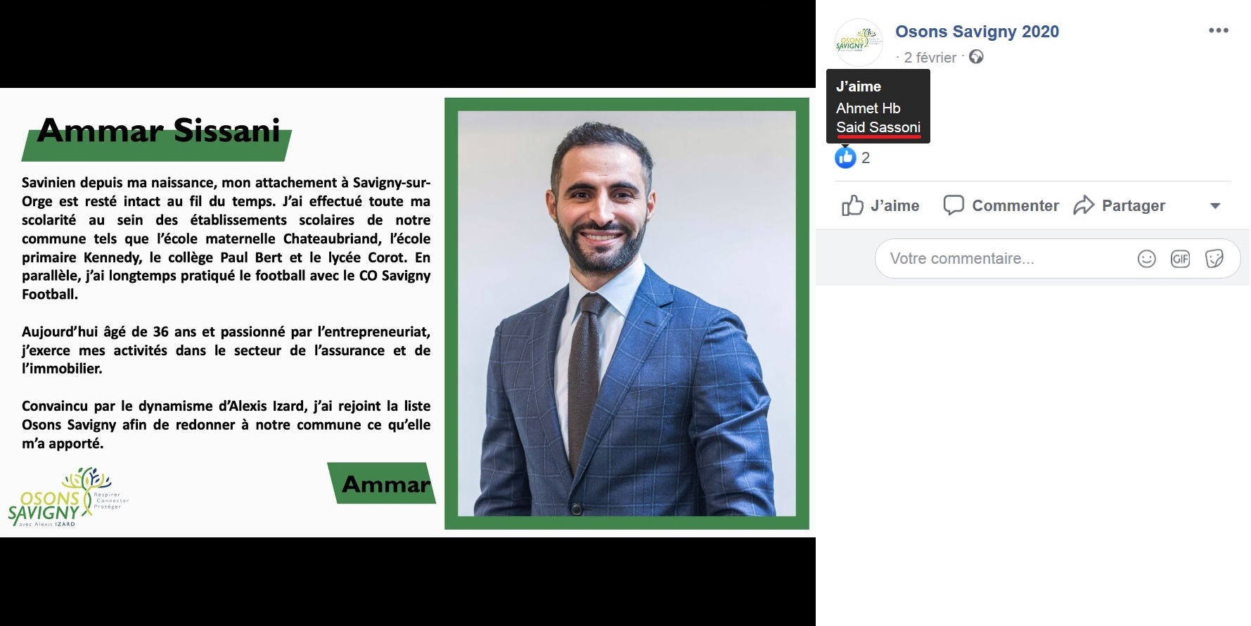 Le 02 février 2020, la liste Osons Savigny annonçait la présence sur sa liste d’Ammar SISSANI.