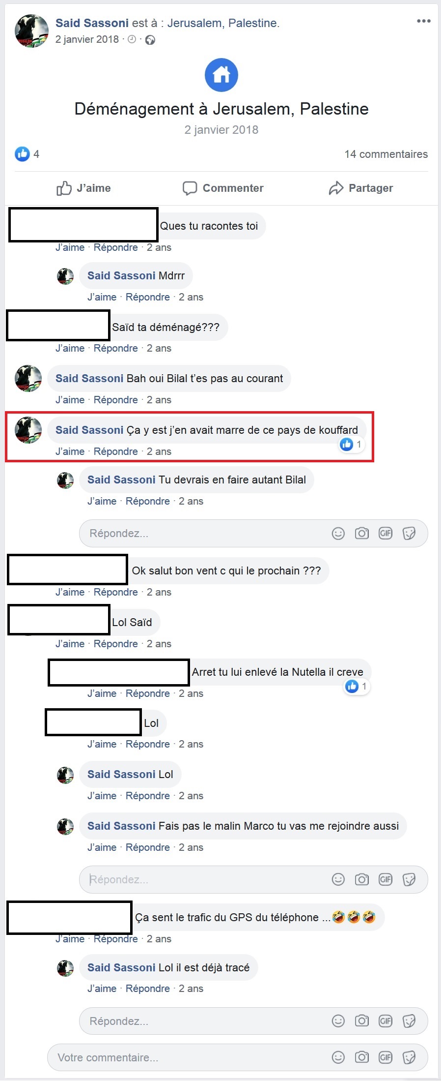 Et puis, cette conversation, dans laquelle le fameux Saïd écrit qu’il en avait marre de ce pays de kouffars (la France), sous-entendu qu’il est bien content d’être parti à Jérusalem. C’est donc comme cela que vous me (kafr) considérez. Moi, je ne partage pas votre foi, parce que je suis chrétien, mais je ne dis pas que vous n’avez pas droit au salut ou que vous m’êtes inférieur.