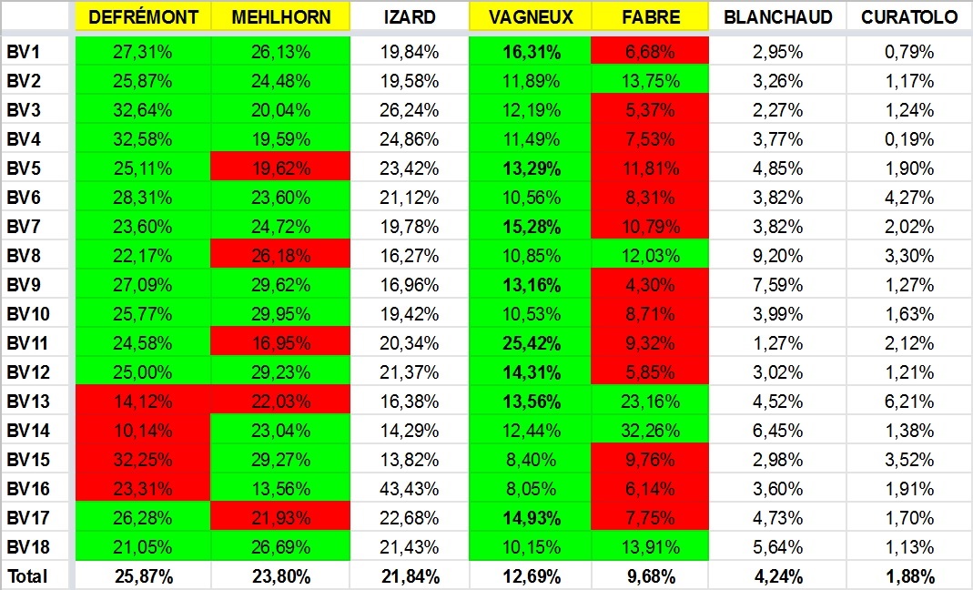 BV 1 : FABRE s’effondre au profit de DEFRÉMONT et de VAGNEUX.