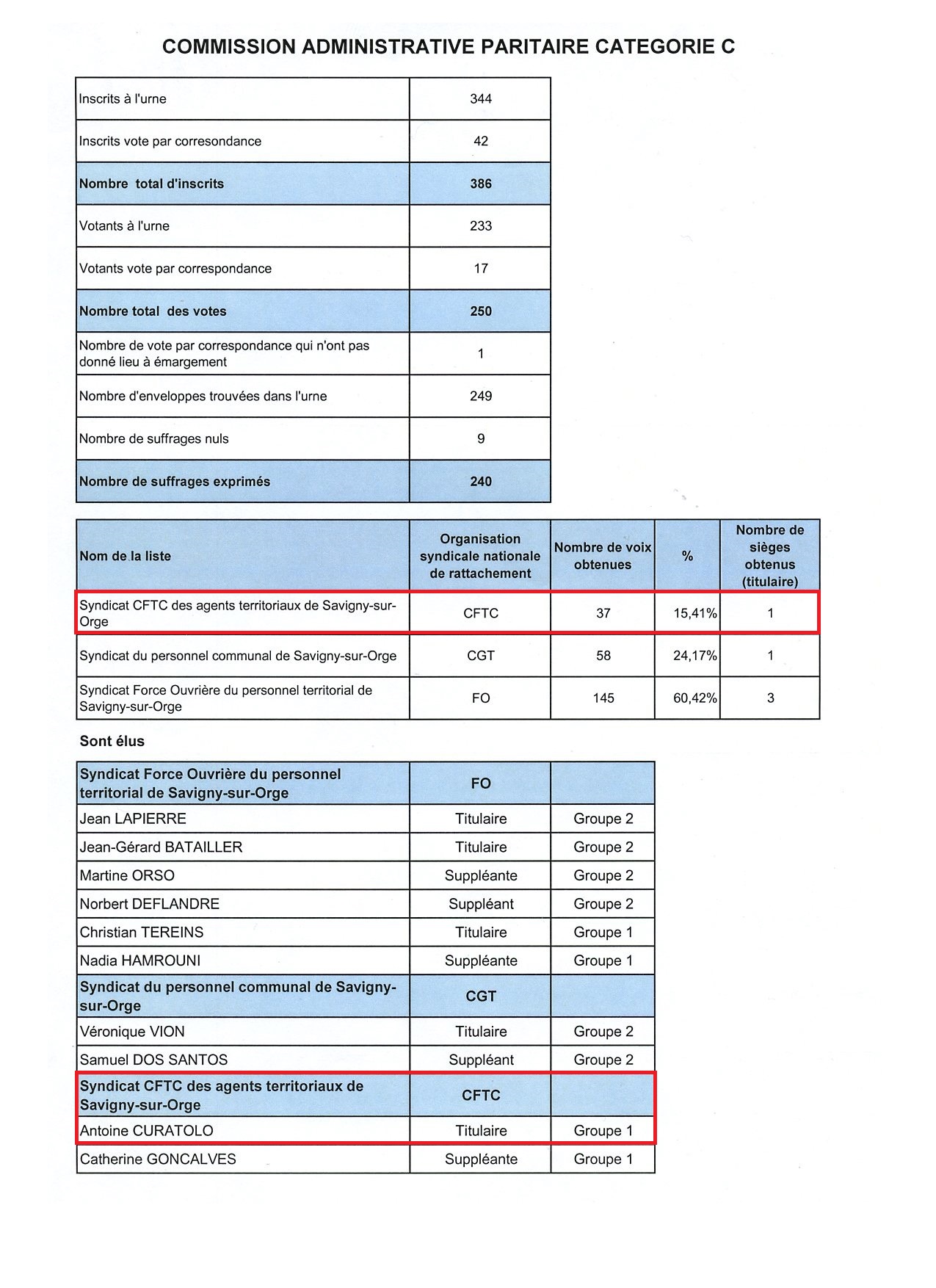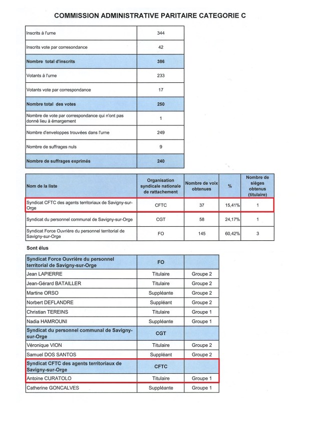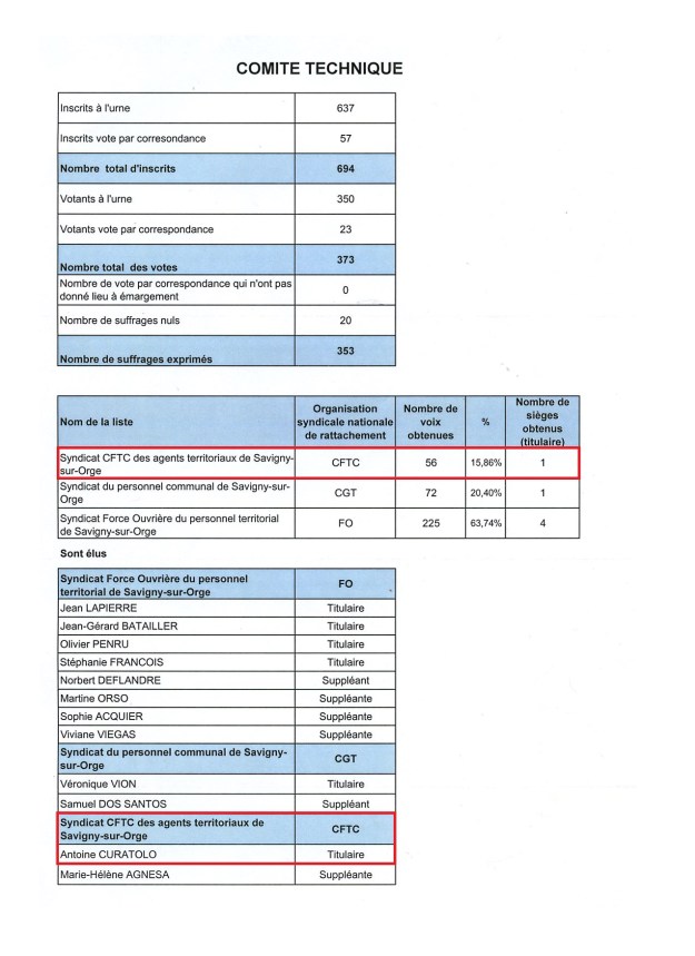 Si nous connaissons désormais tous le score d’Antoine CURATOLO au premier tour de l’élection municipale, il est un résultat que peu connaissent qui était son score aux élections professionnelles, lui permettant d’être délégué syndical des agents.