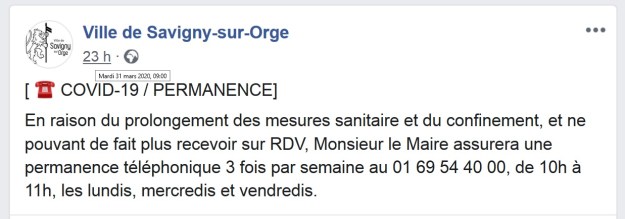On passe effectivement de 1 heure 30 de permanence téléphonique du maire par mois à 3 heures par semaine.