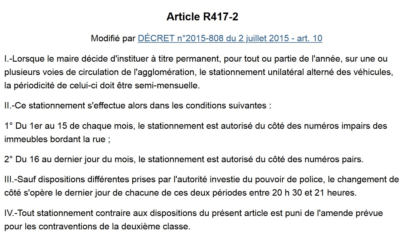 Eh non, le changement de côté du stationnement alterné ne se fait pas « au plus tard demain matin » mais bien la veille au soir à 20 heures précises.