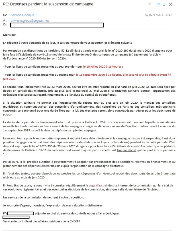 Dans le flou juridique actuel, nous avons contacté la Commission nationale des comptes de campagne et des financements politiques (CNCCFP) pour savoir s’il était encore possible d’effectuer des dépenses de campagne en vue du second tour. Voici sa réponse.