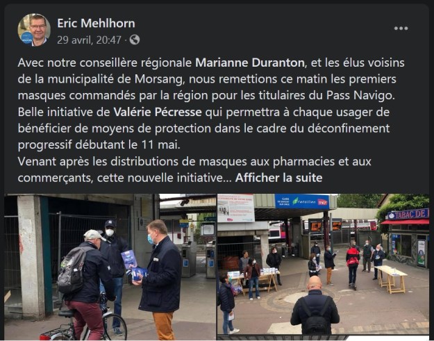 La distribution de masques n’est absolument pas politique. À part cela, vous avez quand même la droite d’un côté de la gare (côté Savigny) avec DURANTON/MEHLHORN et la gauche de l’autre (côté Morsang-Viry) avec Marjolaine RAUZE…