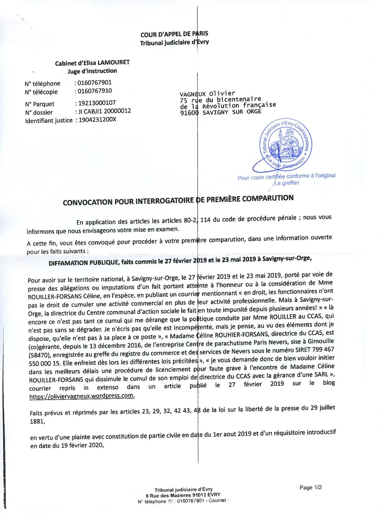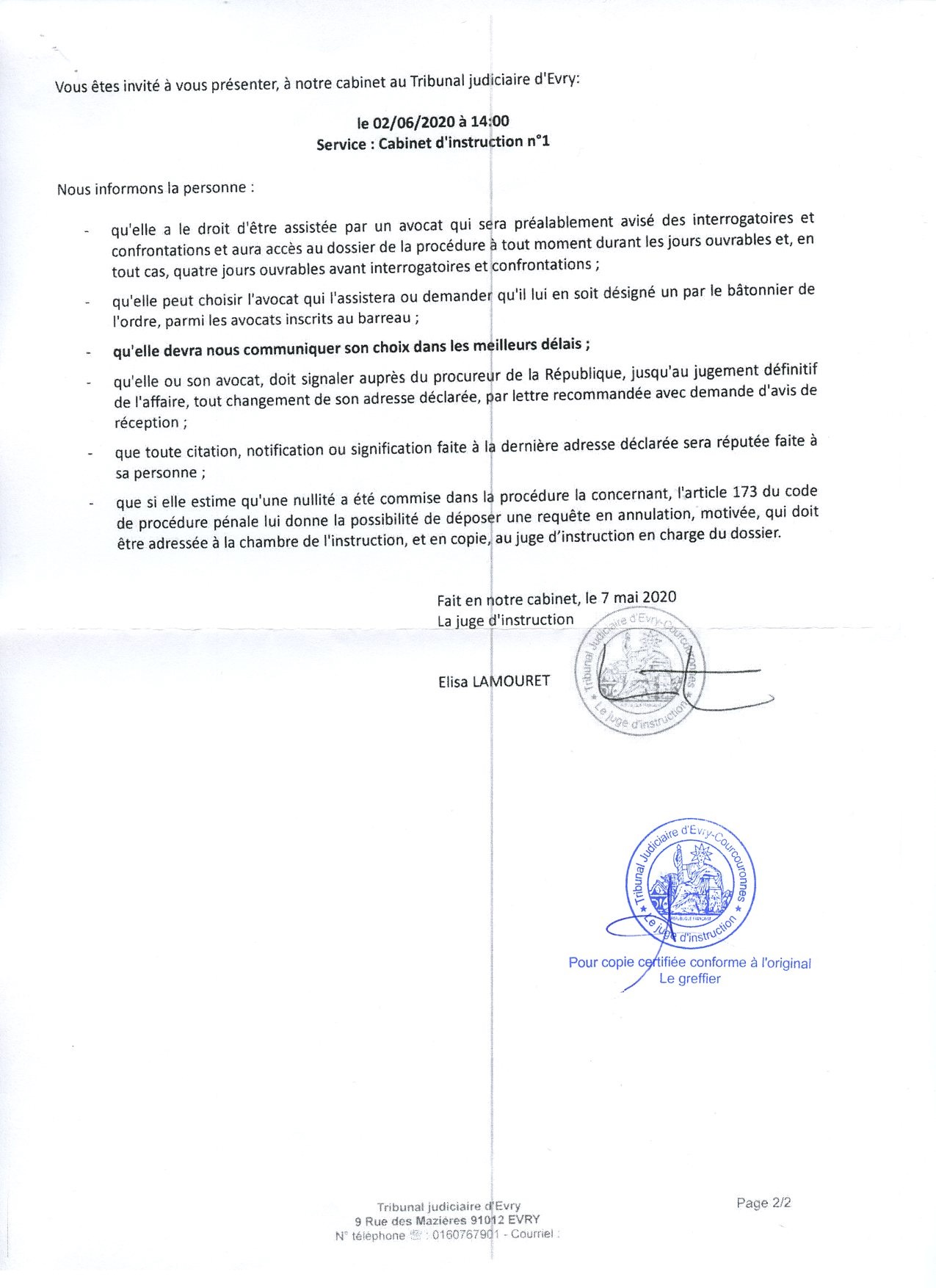 Je suggère donc à Céline ROUILLER-FORSANS, qui doit me lire, de se dépêcher de prendre conseil aux fins de se renseigner d’éventuelles corrections qu’il faudrait alors rapidement effectuer, sauf à repousser ma mise en examen au-delà du 02 juin 2020 !