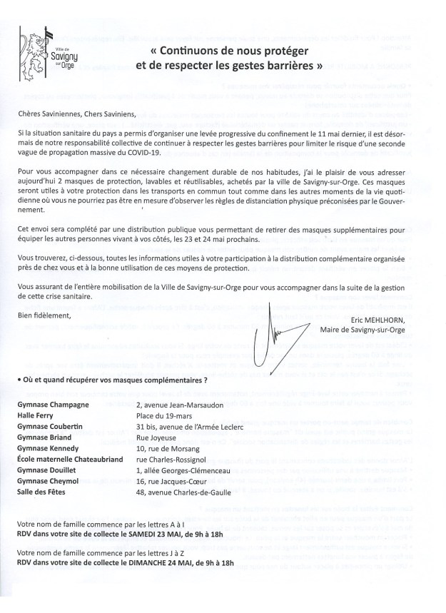 Au passage, et je termine par là, on appréciera MEHLHORN qui n’est absolument pas en campagne électorale, et qui se fait photographier sur le Facebook de la Ville et qui met un mot personnalisé dans les enveloppes des masques (« J’ai le plaisir de vous adresser »).