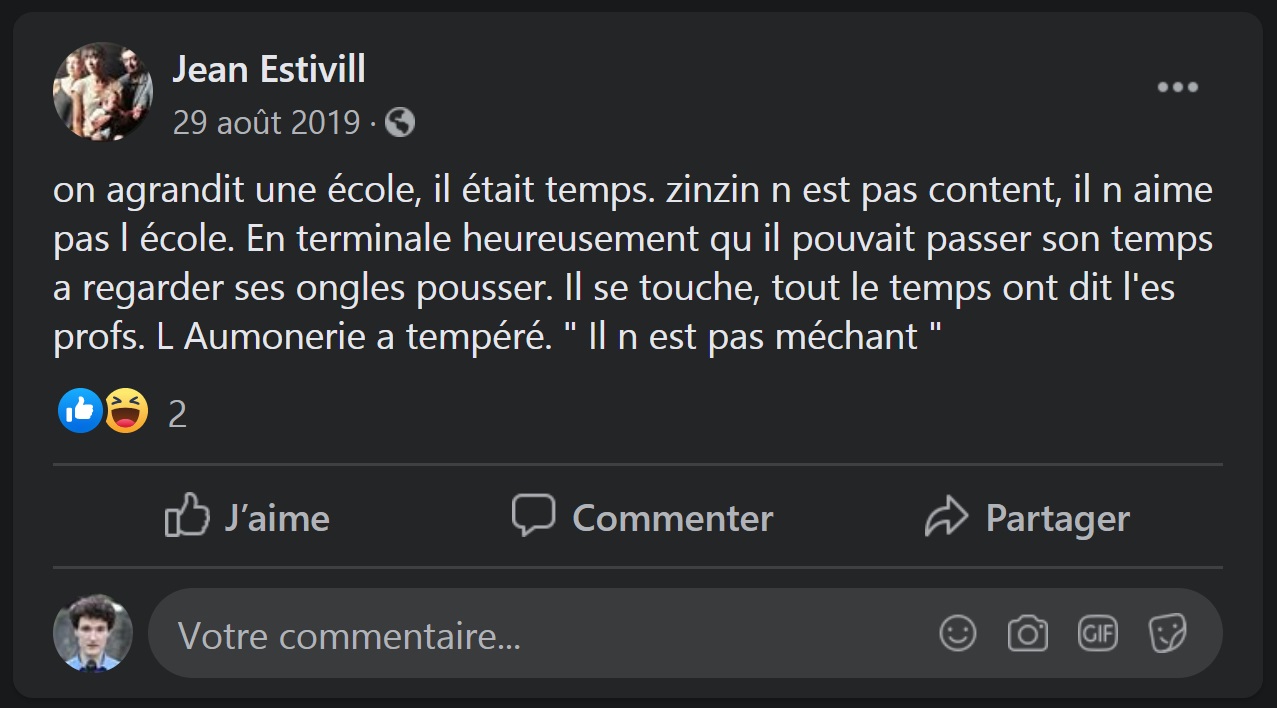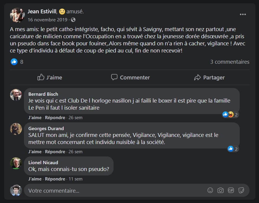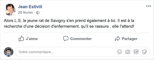 Et puis je me suis replongé dans quelques gentillesses d’ESTIVILL, et je pense que finalement, à la lumière de ces écrits, oui, je vais porter plainte contre lui, pour qu’il arrête !