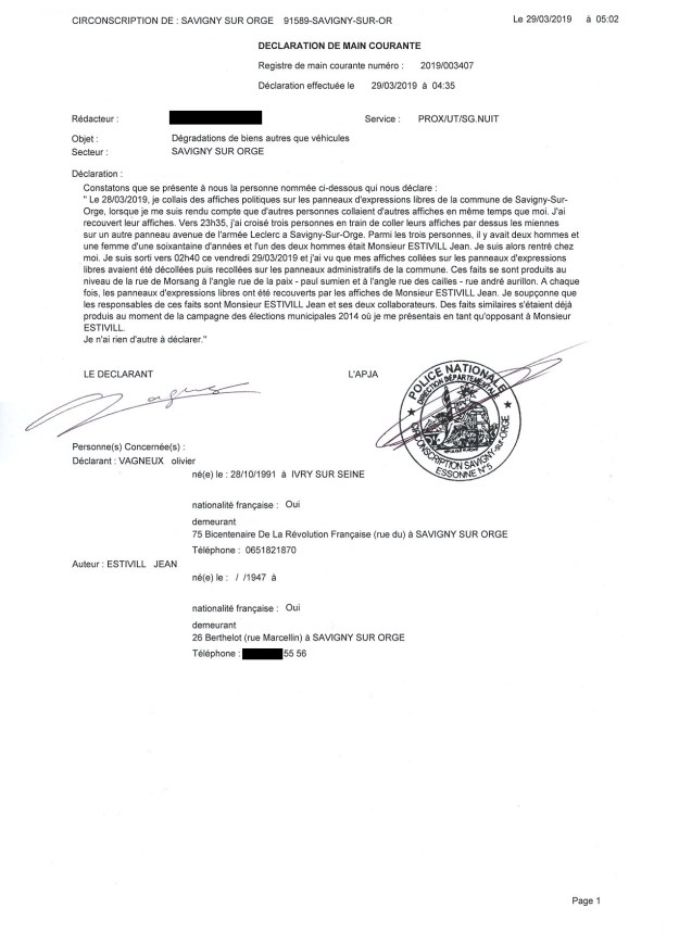 Et ma main courante parce qu’il décollait mes affiches et les recollait sur des panneaux administratifs.