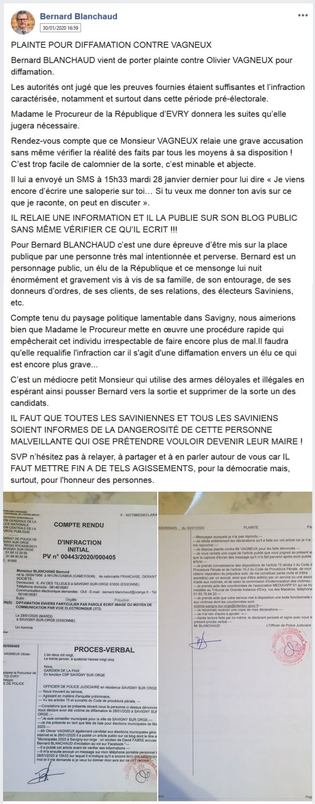 Ce mercredi 20 mai 2020, j’étais auditionné au commissariat de Savigny, en tant que victime, dans le cadre de trois plaintes déposées pendant la campagne des municipales.