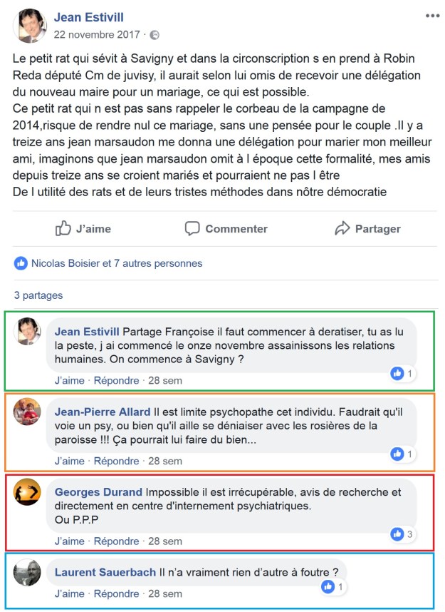 Je précise que de simples excuses de la part de JALLET, ainsi que la suppression de son message, m’aurait conduit à retirer ma plainte…