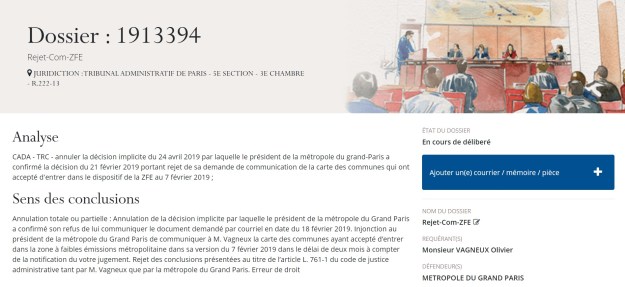 Ma deuxième victoire serait l’obtention de la carte de la ZFE (Zone à faible émission) au 7 février 2019, soit la carte des communes qui avaient voté le principe de la ZFE à la date de sa création, mais dont les maires rechignaient finalement à prendre l’arrêté appliquant réellement la ZFE par peur de se mettre à dos une partie de leur population qu’ils privent de l’usage de leur voiture dans leur commune de résidence (les voitures qui n’ont pas le niveau Crit’Air requis).