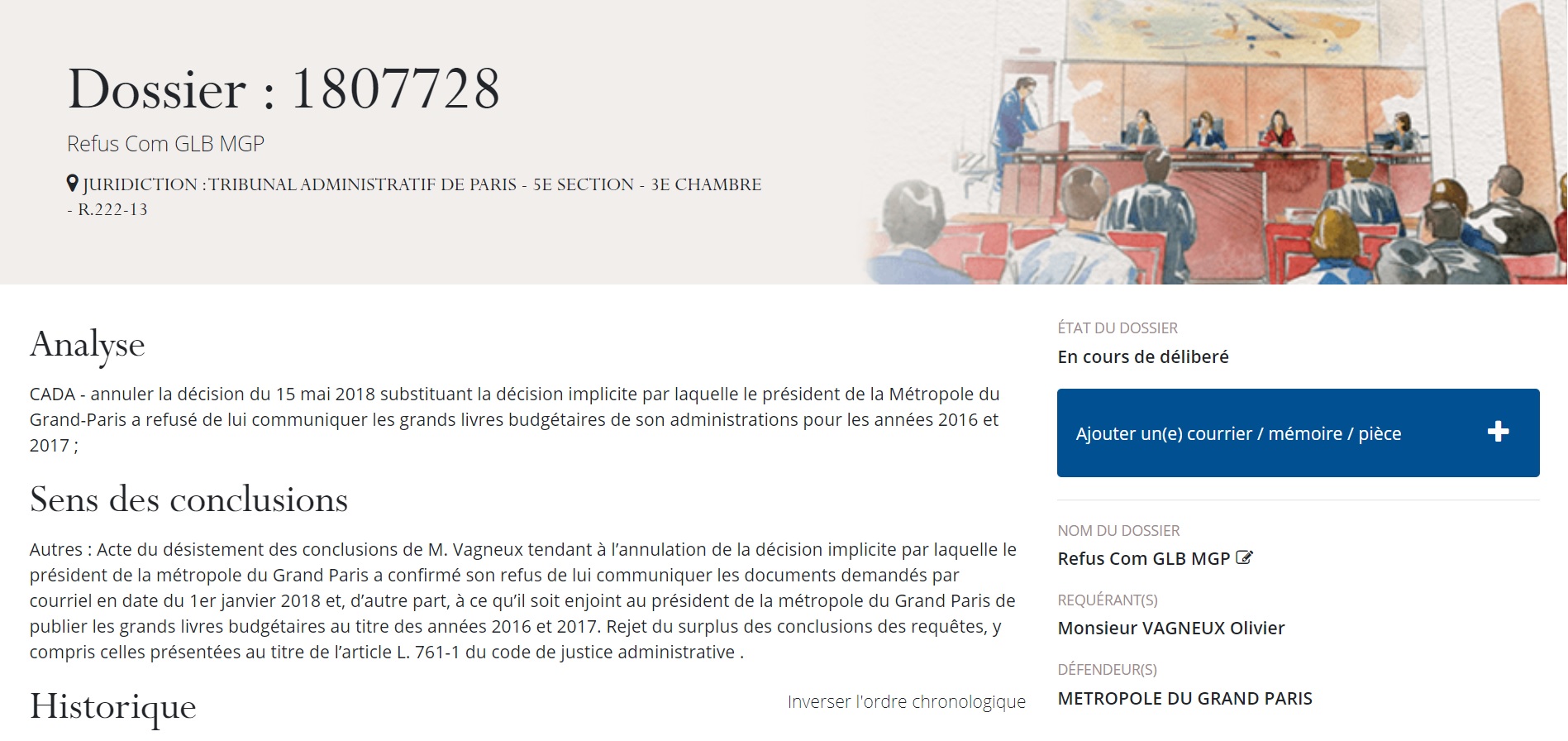 Tout d’abord, si le Tribunal suit les conclusions du rapporteur public, alors la Métropole recevra une injonction de publier les grands livres budgétaires 2016 et 2017.