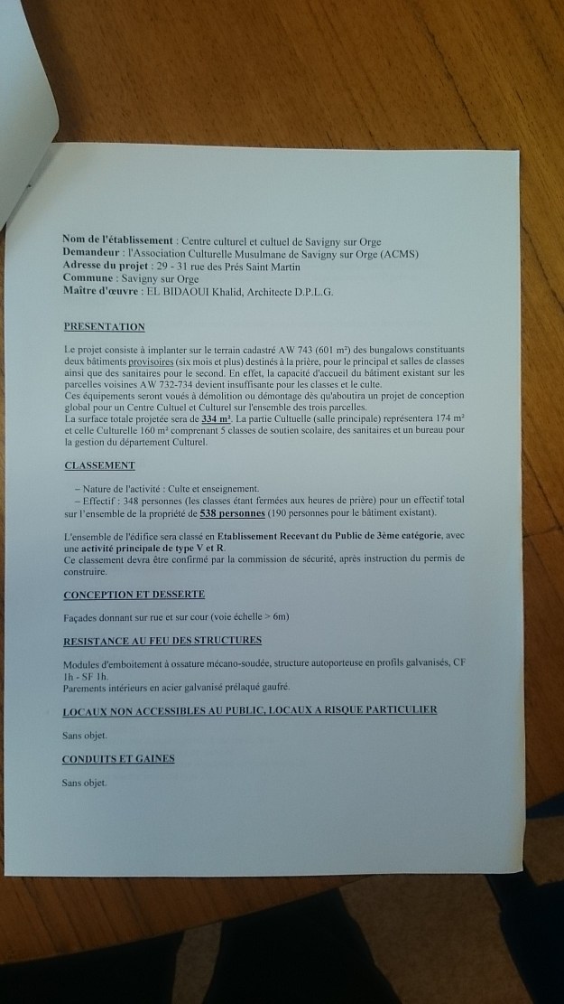 Et il est vrai que le préfet ne s’est pas opposé au motif et a laissé faire, ce sont d’autres sources, qu’il serait plus facile de surveiller un tel lieu que « l’islam des caves ».