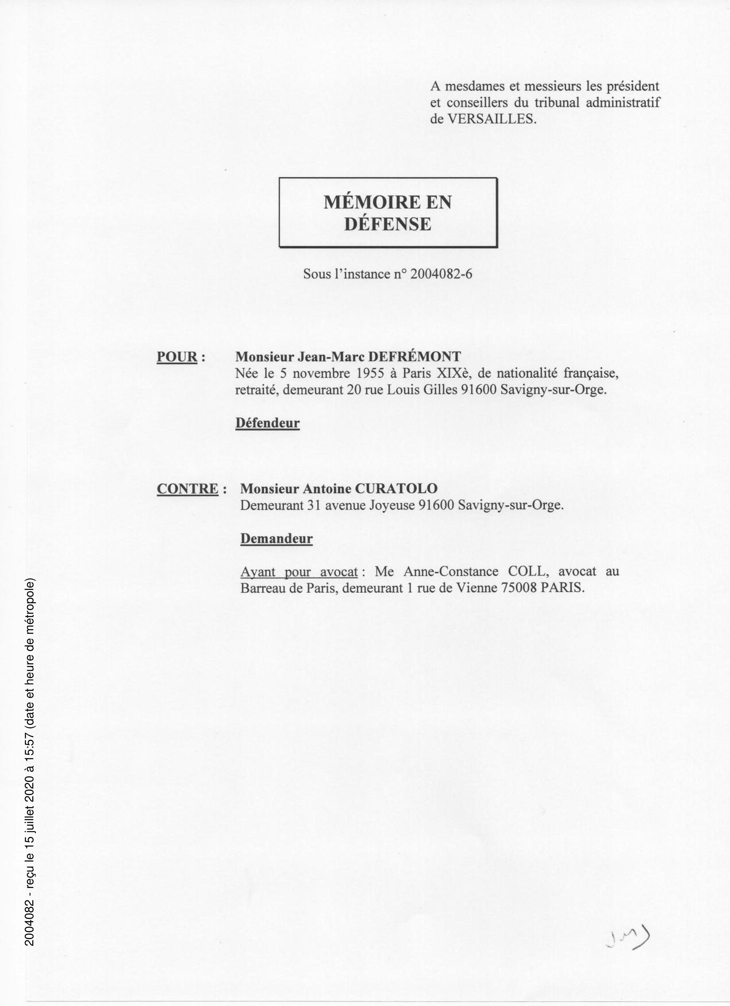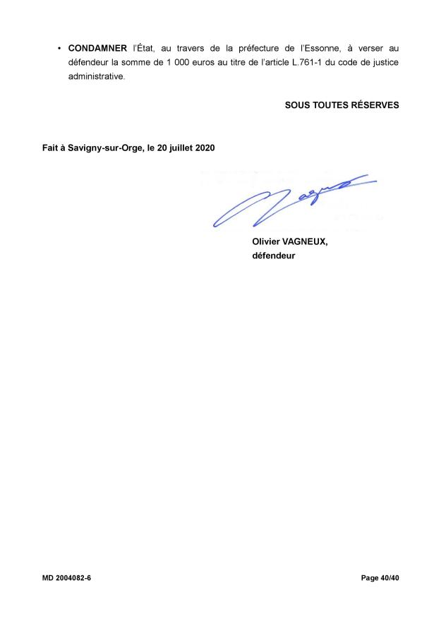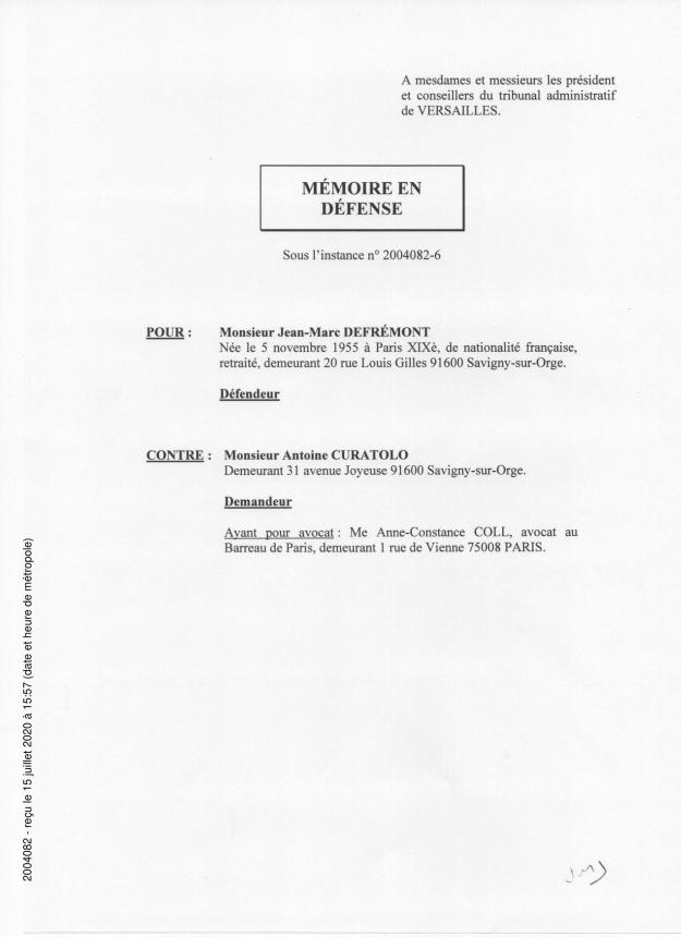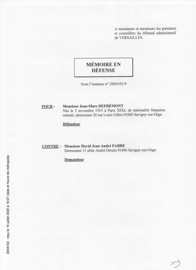 J’ai terminé et envoyé mes mémoires en défense ce lundi 20 juillet 2020. Ils comptent respectivement 39 et 40 pages plus 58 productions présentées sur 6 pages de bordereau.