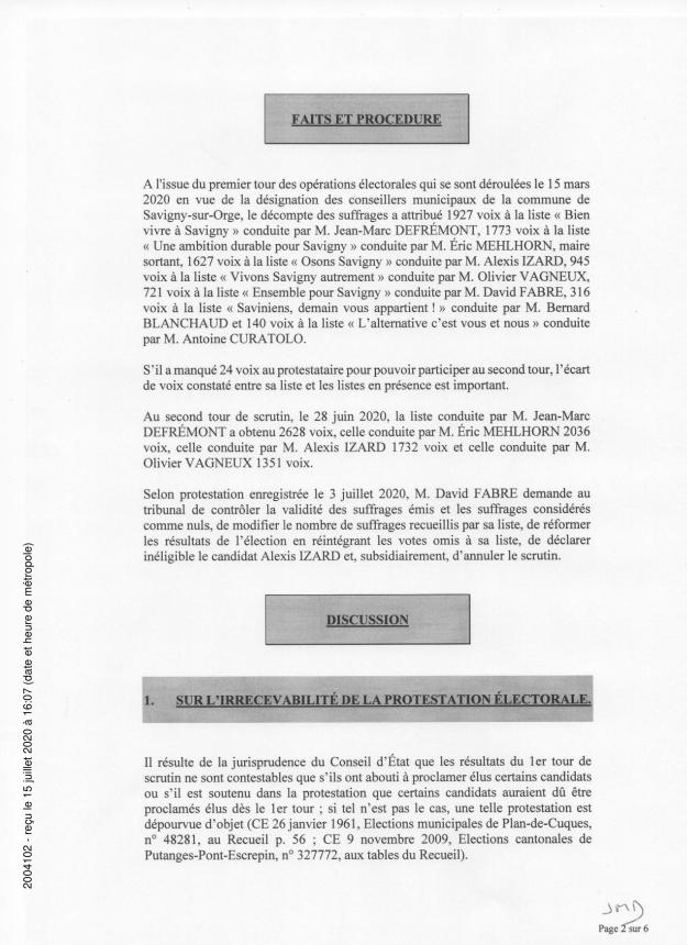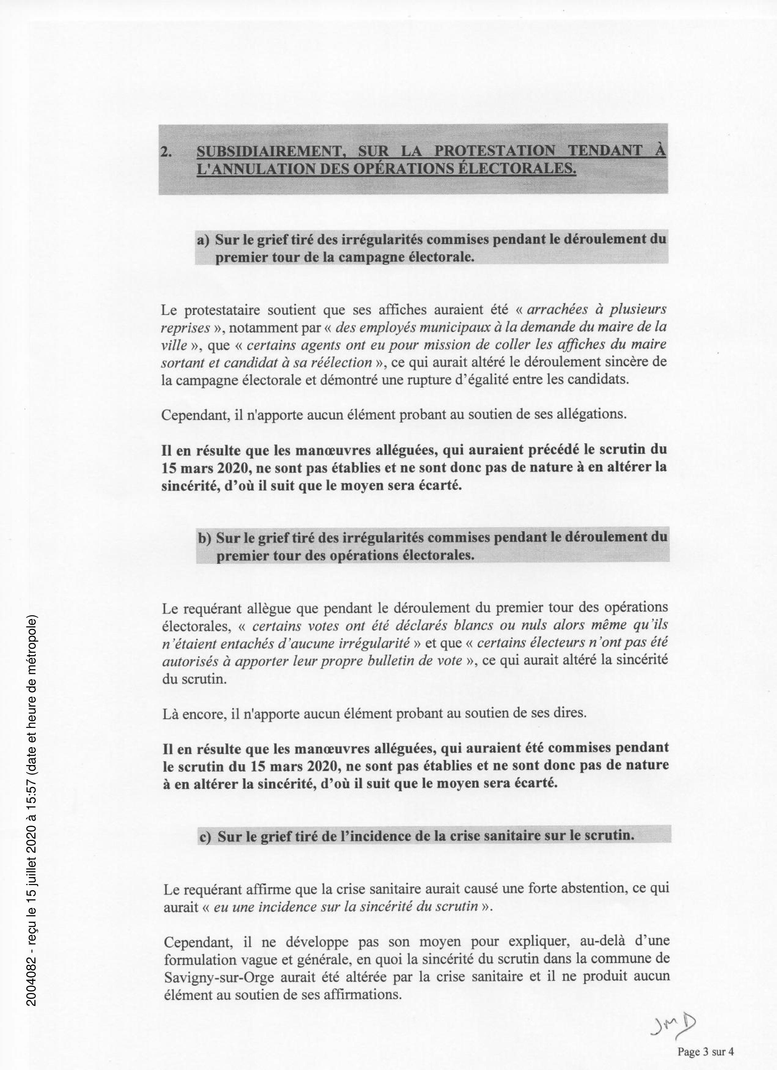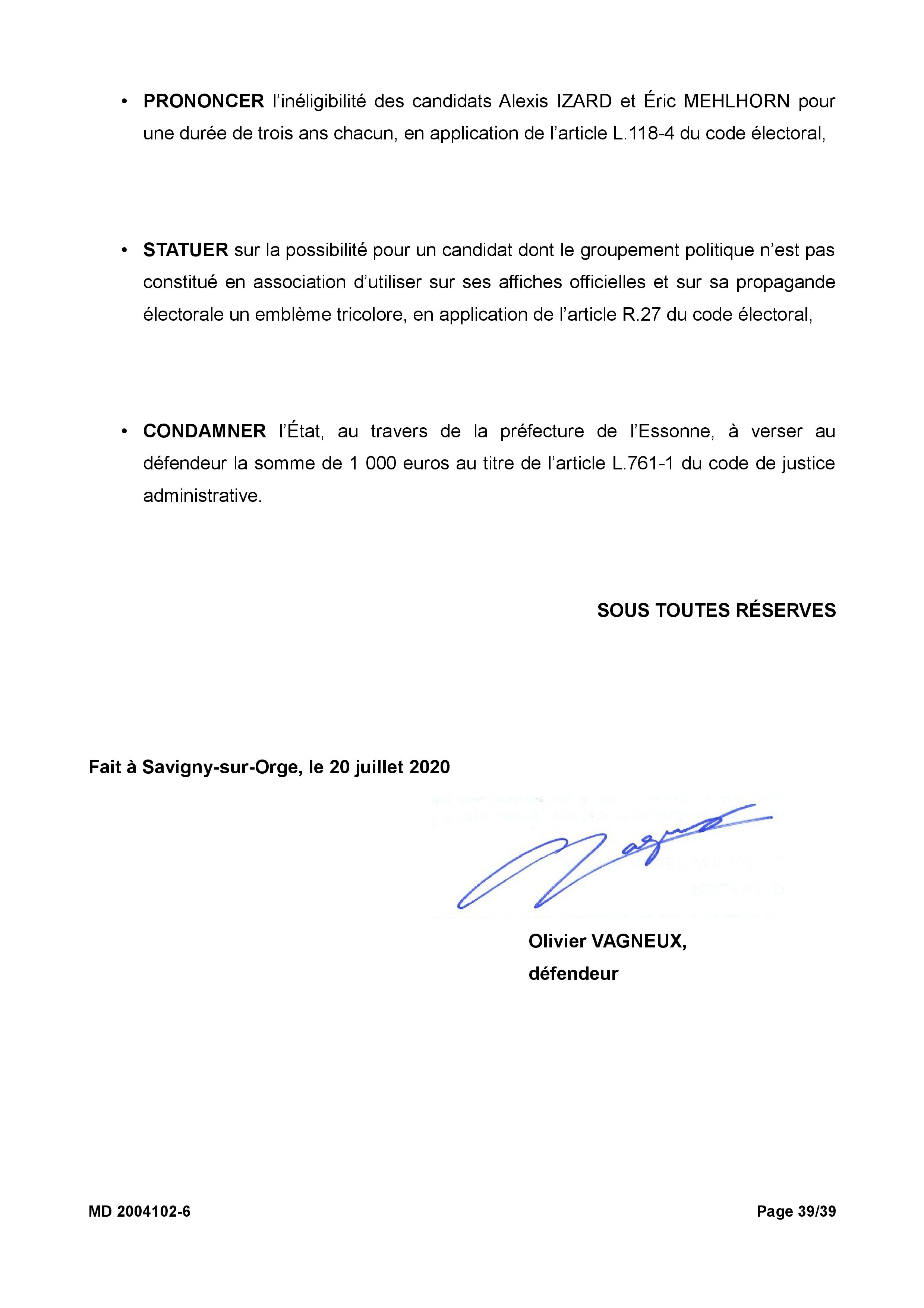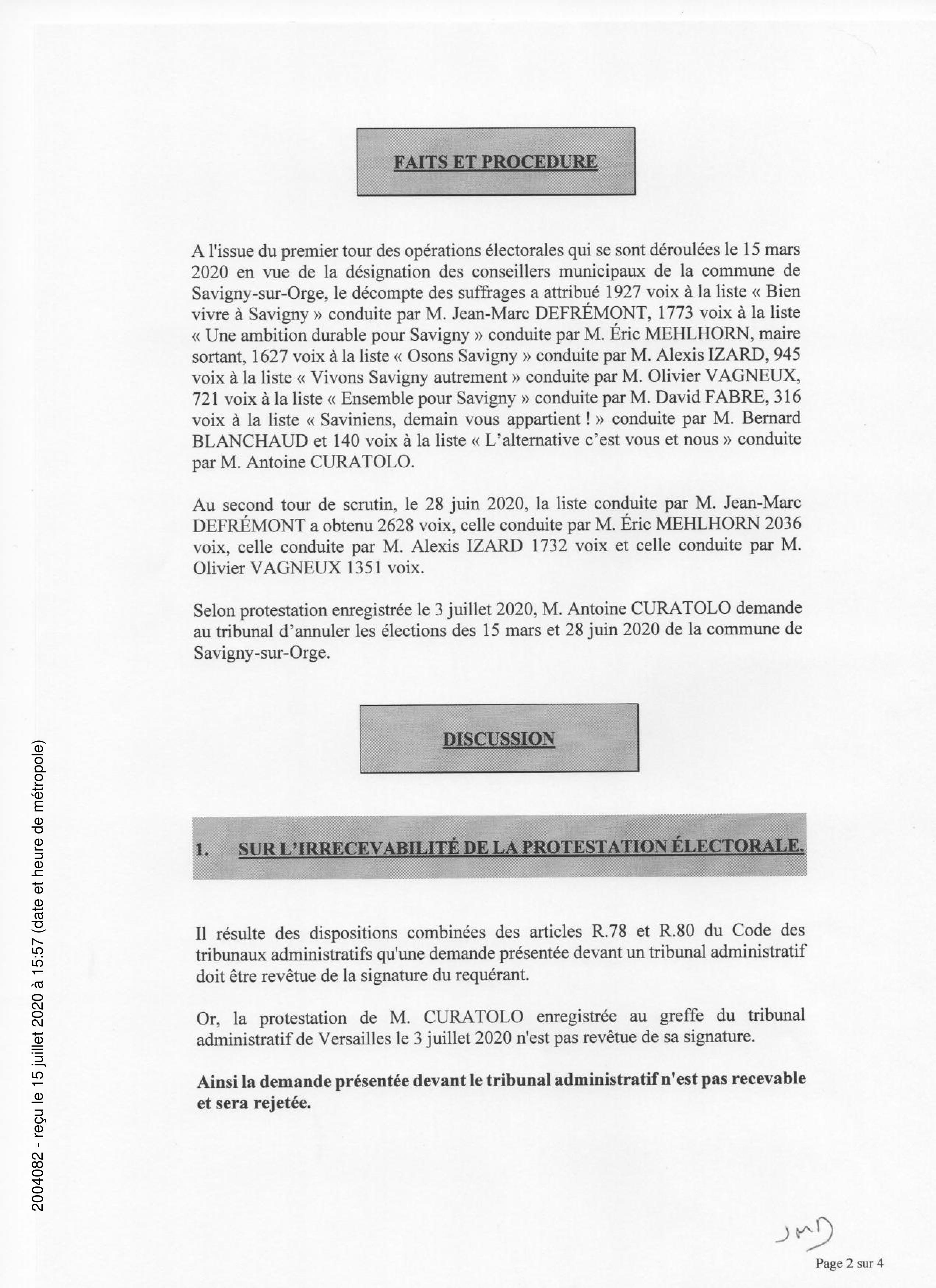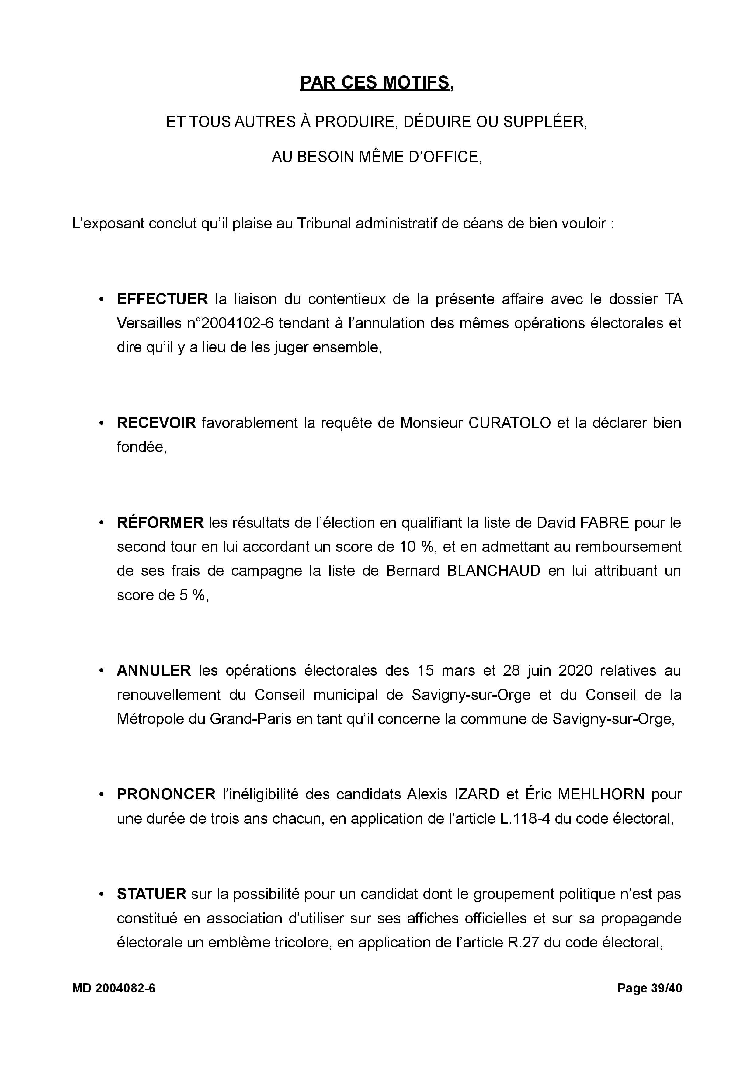 De manière plus étonnante, Éric MEHLHORN, qui avait commencé à aller démarcher les vieux pour trouver des attestations, ne veut plus qu’on annule l’élection et il soutient le rejet de la requête de CURATOLO. Lâche jusqu’au bout…