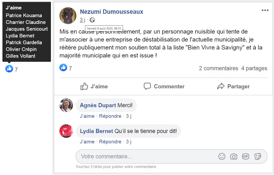 12 jours après son élection, le traitement des opposants politiques à DEFRÉMONT se caractérise par un dépôt de plainte, à motif politique puisque c’est même indiqué dans le texte de sa plainte. C’est limite DERNIER AVERTISSEMENT AVANT GOULAG !