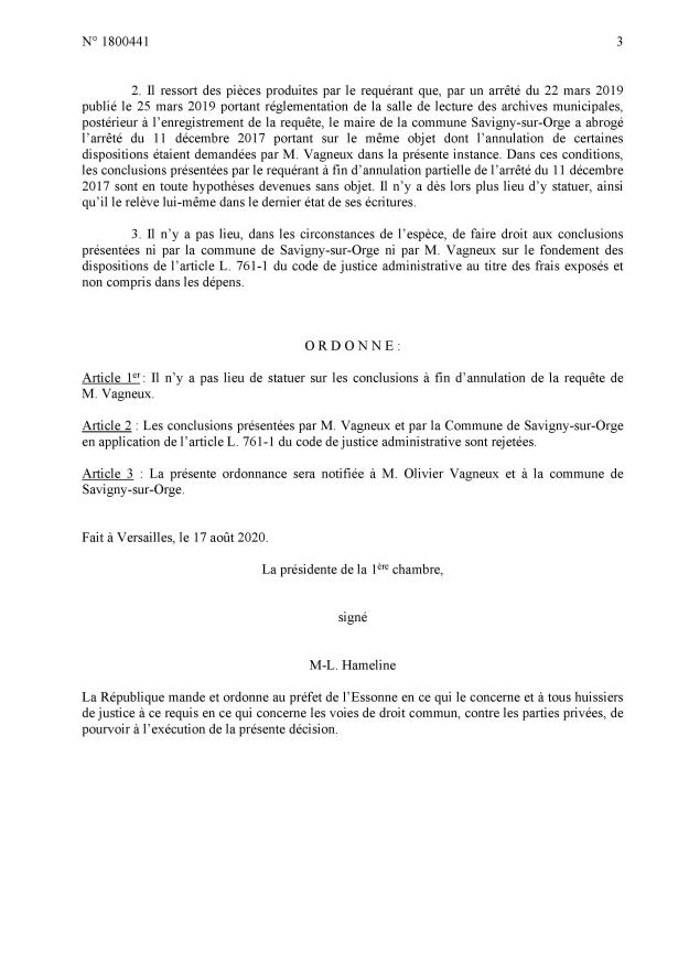 J’ai été notifié ce vendredi 28 août 2020 d’une ordonnance de jugement par le Tribunal administratif de Versailles, laquelle acte quand même, malgré qu’elle ne m’accorde aucun frais de Justice, une belle victoire contre l’omniscience d’Éric MEHLHORN, à qui on ne pouvait plus rien dire depuis qu’il avait été touché par l’Esprit saint démocratique et rendu parfait à la faveur de l’élection. DEFRÉMONT prend tout droit le même chemin…