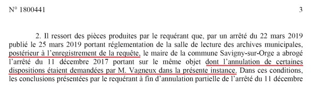 Et trois jours après le mémoire en défense de la Commune, l’arrêté était modifié… En prenant en compte mes modifications, ce qui est d’ailleurs indiqué dans l’ordonnance, et puis aussi parce que je l’aurais ré-attaqué si cela n’avait pas été le cas.