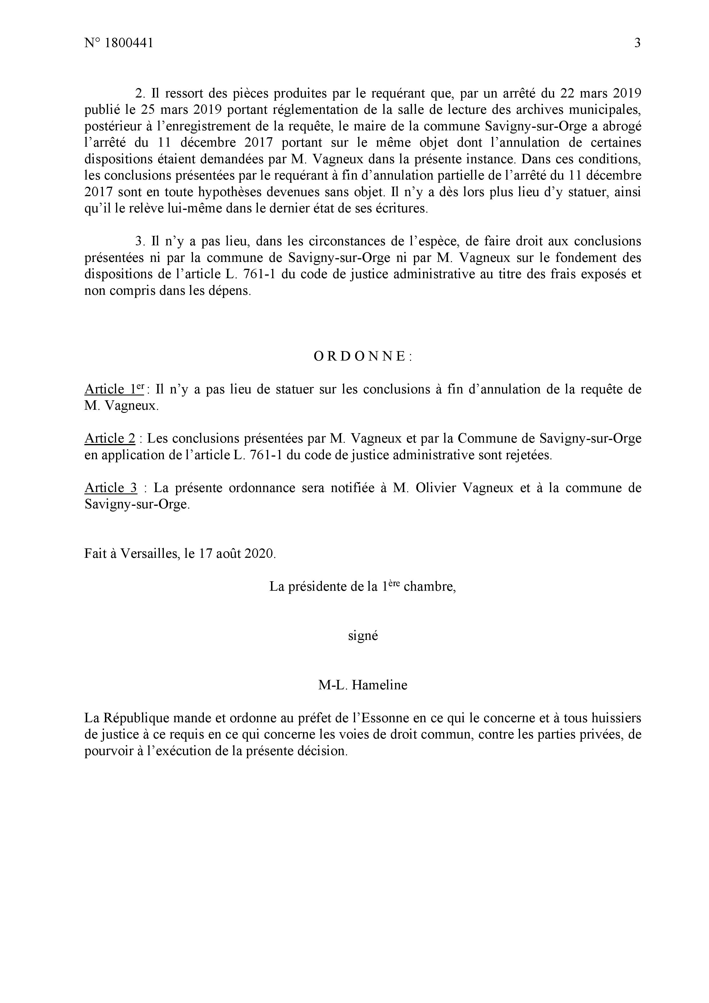 J’ai été notifié ce vendredi 28 août 2020 d’une ordonnance de jugement par le Tribunal administratif de Versailles, laquelle acte quand même, malgré qu’elle ne m’accorde aucun frais de Justice, une belle victoire contre l’omniscience d’Éric MEHLHORN, à qui on ne pouvait plus rien dire depuis qu’il avait été touché par l’Esprit saint démocratique et rendu parfait à la faveur de l’élection. DEFRÉMONT prend tout droit le même chemin…