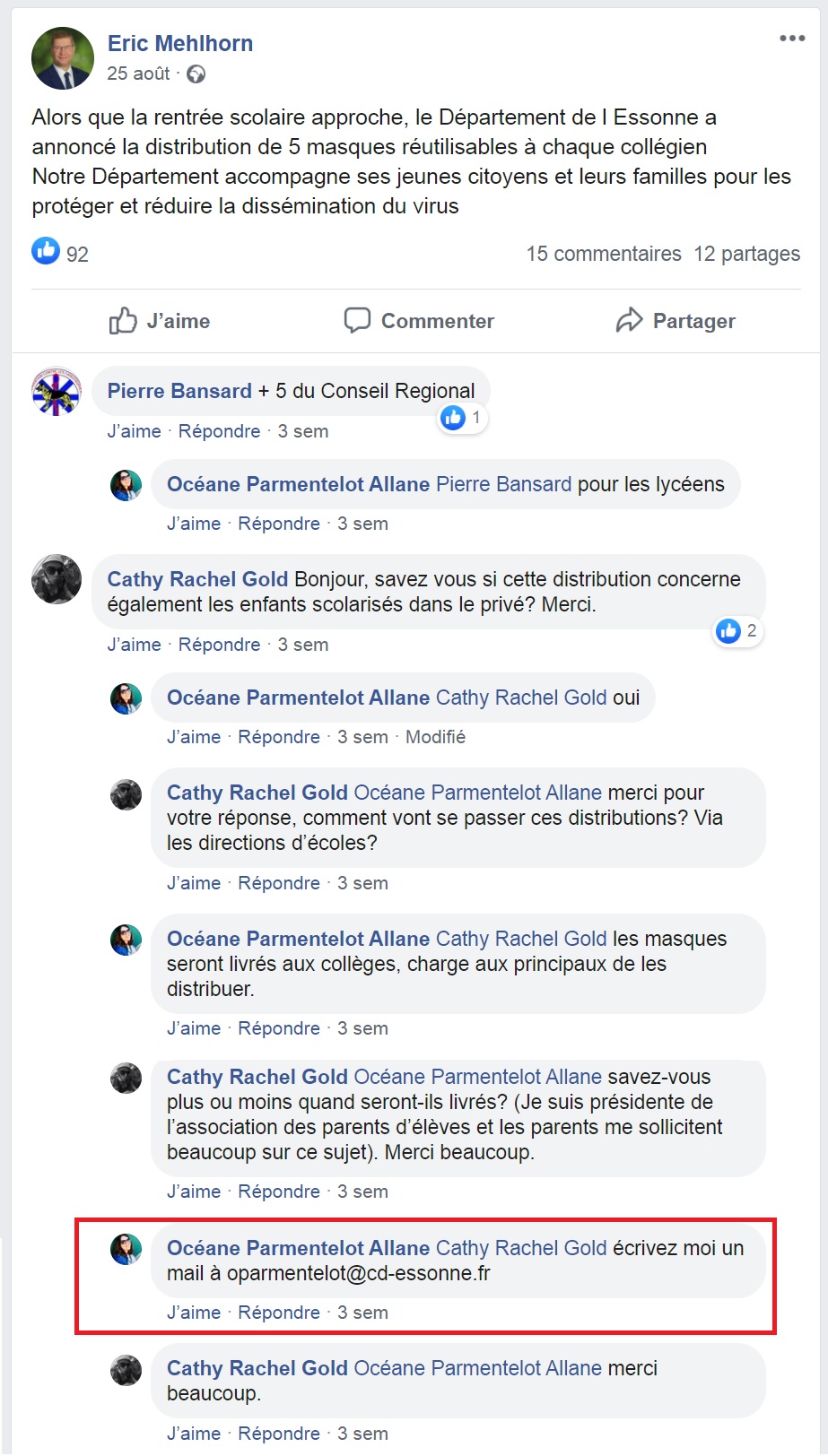 Depuis quelques semaines, nous pouvons observer une jeune femme commenter les publications d’Éric MEHLHORN, relativement à ses activités départementales.