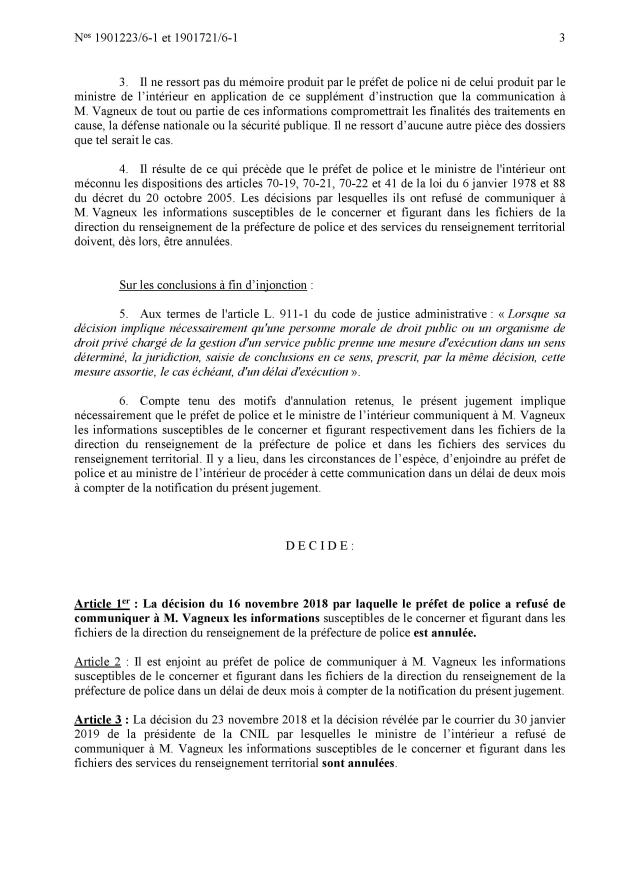 Rassurez-vous, cela n’arrivera pas. Le ministère de l’Intérieur va interjeter appel et il gagnera, sinon en cassation car le Conseil d’État a établi une jurisprudence qui va dans le sens de la protection de toutes les fiches de renseignement.