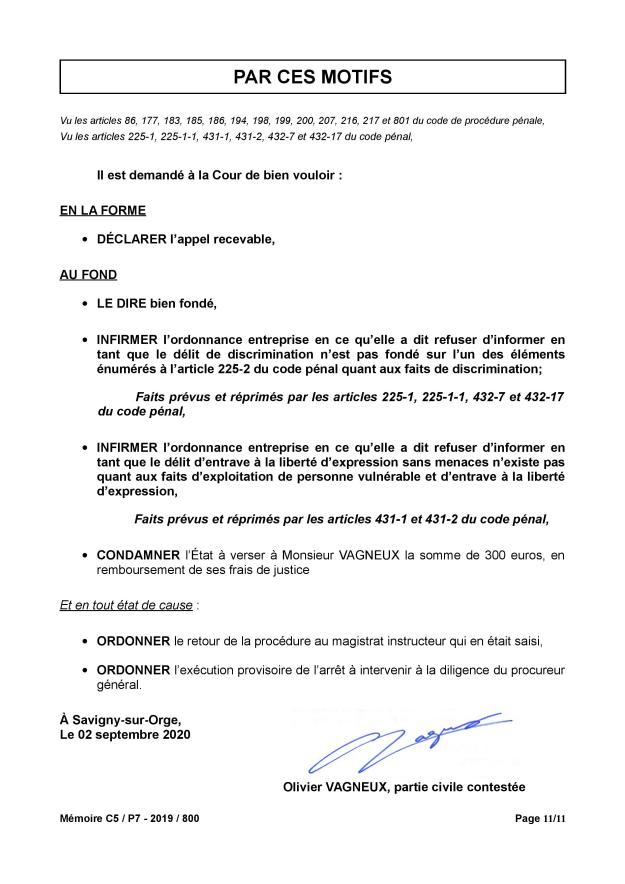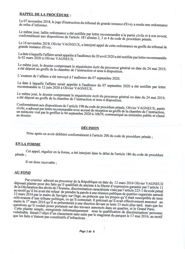 J’en suis donc pour l’instant à avoir obtenu 100 % de satisfaction devant la chambre de l’instruction près la Cour d’appel de Paris avec deux appels gagnés sur deux ! Je suis content de ces victoires.
