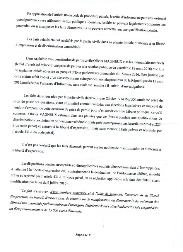 Avec ce formidable paradoxe que je ne pouvais me constituer partie civile que des faits retenus par le procureur dans le cadre de l’enquête préliminaire, lequel magistrat n’avait pourtant pas retenu le délit d’atteinte à ma liberté d’expression.