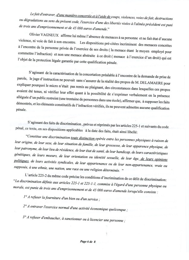 Le motif de l’infirmation de l’ordonnance de refus d’informer est que la juge d’instruction aurait dû relever d’office que MM. MEHLHORN et DELAMAERE ont commis un délit d’atteinte à ma liberté fondamentale d’expression, garantie par les articles 10 et 11 de la Déclaration des droits de l’Homme et du citoyen de 1789.