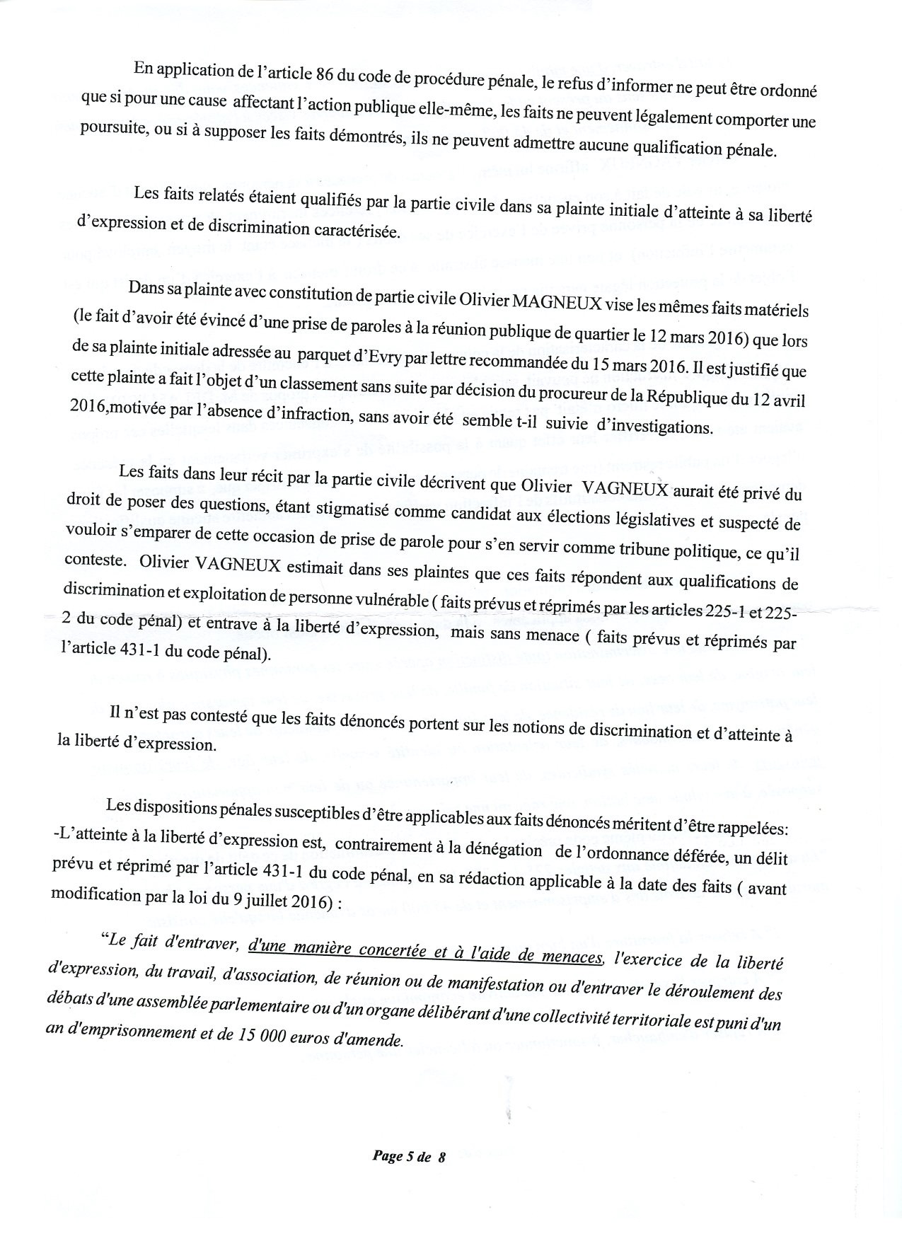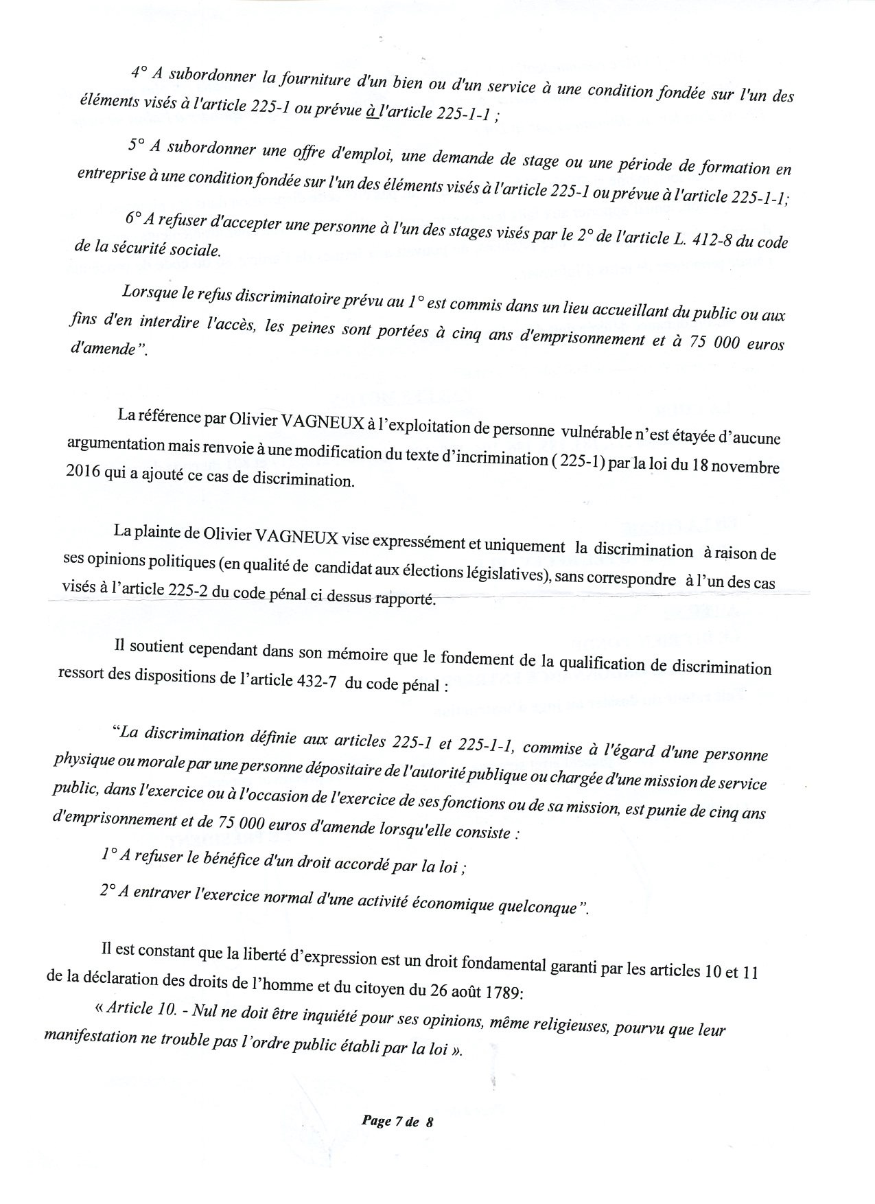 Avec ce formidable paradoxe que je ne pouvais me constituer partie civile que des faits retenus par le procureur dans le cadre de l’enquête préliminaire, lequel magistrat n’avait pourtant pas retenu le délit d’atteinte à ma liberté d’expression.