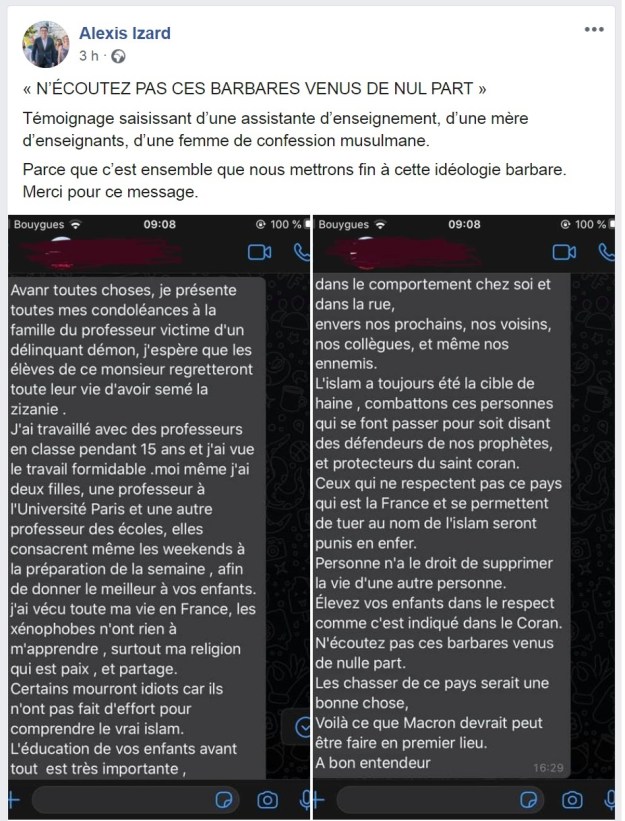 11. L’islam est persécuté. C’est vraiment le lieu de le rappeler. Il y a eu 3 lignes sur le prof et tout le reste est juste l’occasion de passer un message politique.