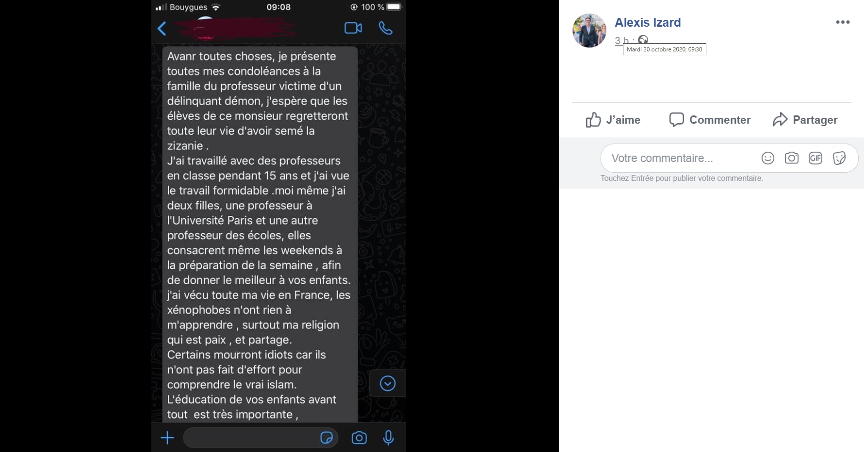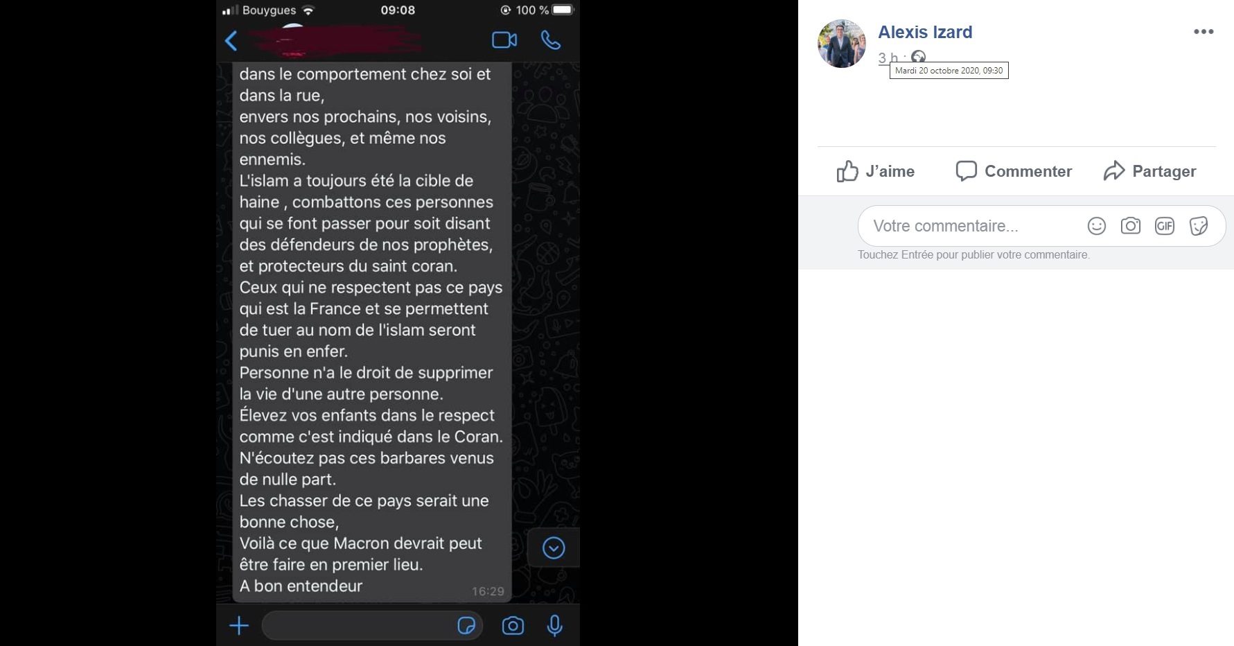 Non, mais sérieusement Alexis, lis ce que tu as publié, et que tu oses présenter comme un témoignage saisissant, probablement parce qu’il semble t’avoir été adressé par une de tes connaissances !!! Tu es fier de toi ? C’est une blague ? On dirait de la mauvaise taqqîya…